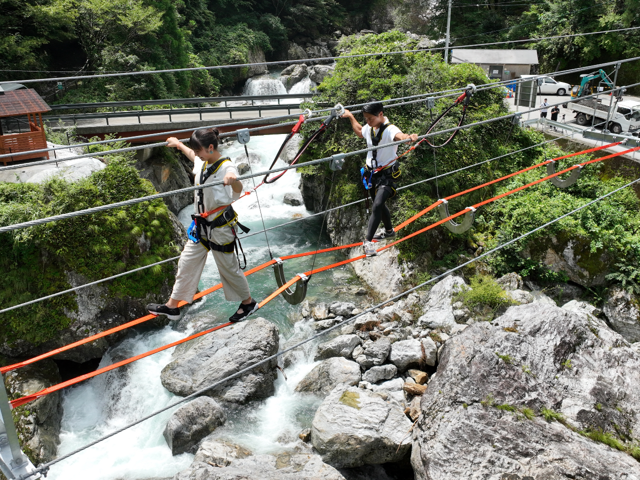 茶農家が営む!?雨でも体験可能なアクテビティ施設!!奇跡の清流『仁淀川』の最上流地域で大自然を満喫!手付かずの渓谷の上空約30mを足場が変わる、吊り橋と渓谷の上を滑る爽快なジップライン!!