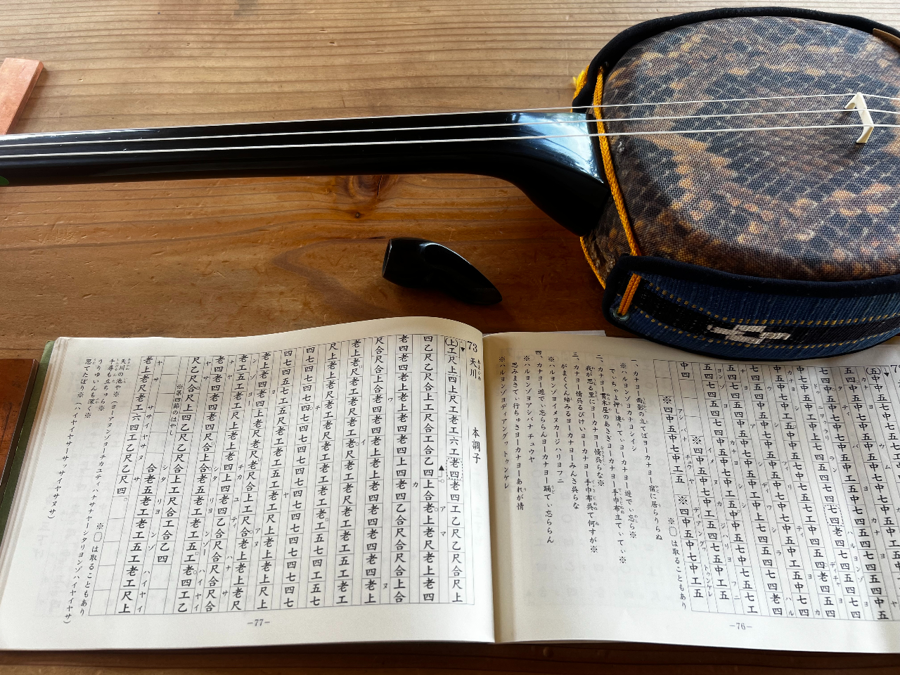 楽譜は漢字で表しています。工工四を読める事が、沖縄三線の第一歩 後、もう一歩は、カラクイの調整方法を会得する事ですね。チンダミー(調弦)で音合わせが第一歩かな?
