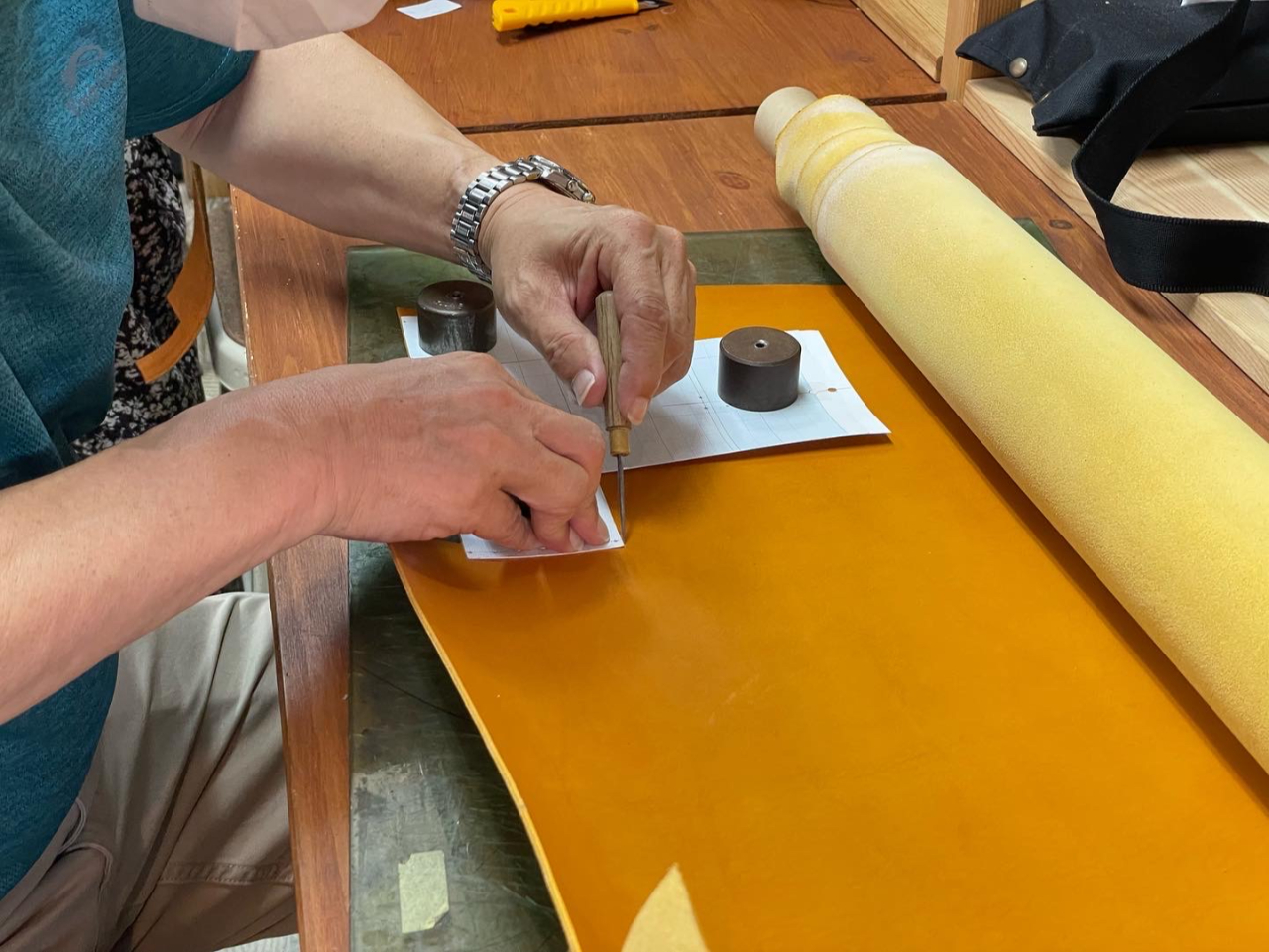 短時間で完成する革小物や革グッズを製作するワークショップです。