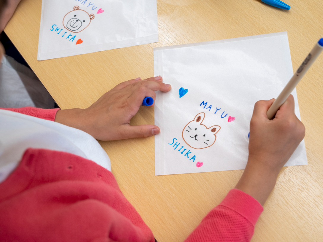 B包装紙に絵を描いていただきます。