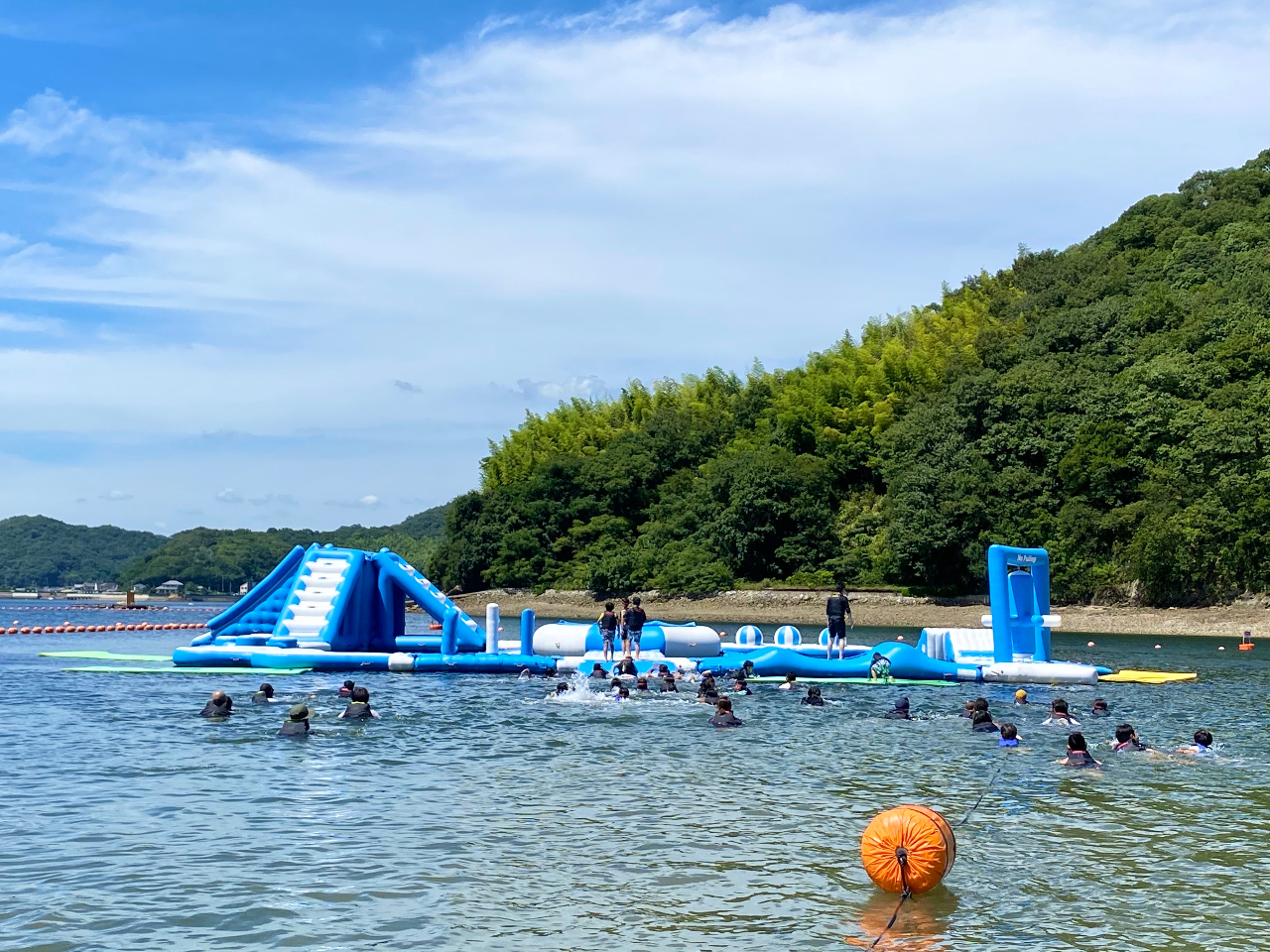 瀬戸内海に浮かぶ田島の東部に広がるクレセントビーチに巨大アスレチックが出現!