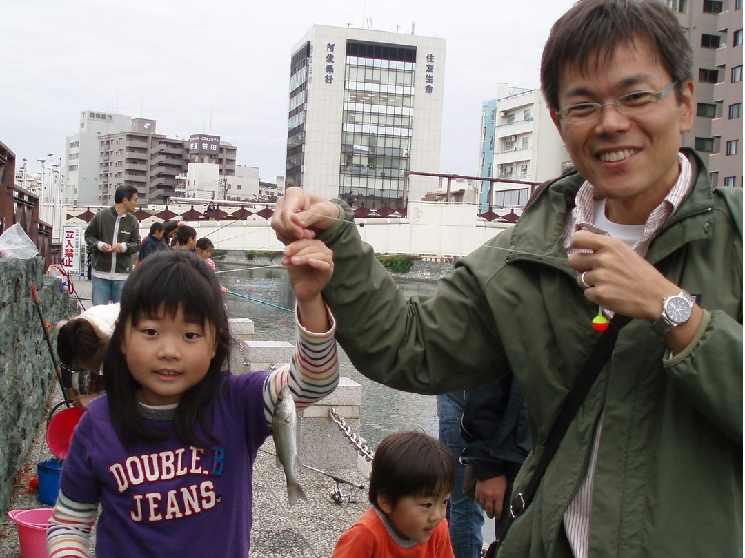 こんな町中でも、ここでは手軽に簡単に釣り体験ができます。