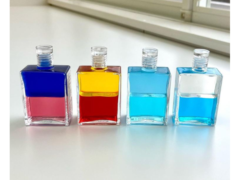 カラフルな2色のボトル123本の中から、気になる4本を選んでもらうことから始まるセラピー。