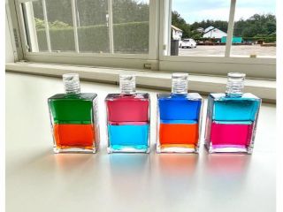 カラフルな2色のボトル123本の中から、気になる4本を選んでもらうことから始まるセラピー。