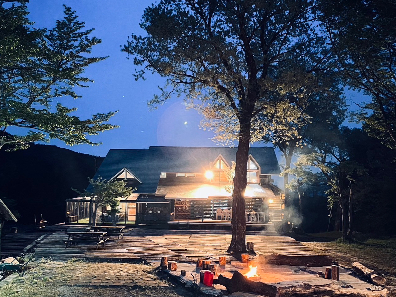 敷地内にレストラン宿泊施設、外でキャンプもお楽しみいただけます。別途ご予約必須