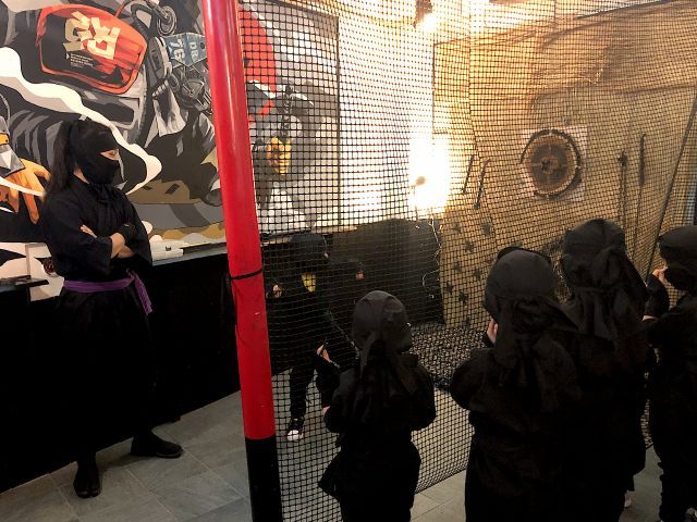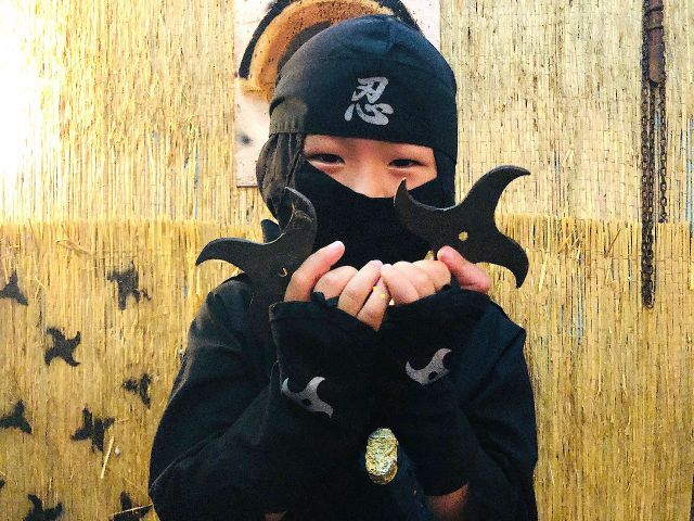 | 料金に含まれるもの | 忍者修行(手裏剣, 吹き矢, 剣術)、忍者服レンタル、お食事1品、ドリンク1品 | 1予約あたりの予約可能人数 | 1人〜10人 |