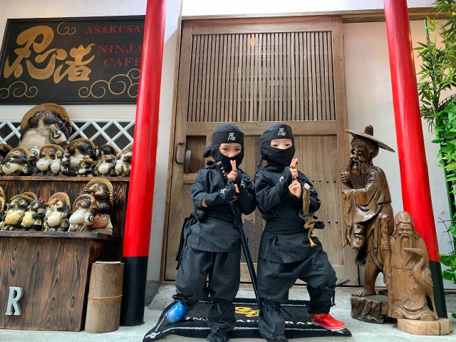 忍者修行(手裏剣・吹き矢・剣術)と忍者コスチュームのレンタル、お食事一品、ドリンク1杯が付いた忍者カフェ原宿堪能プラン!