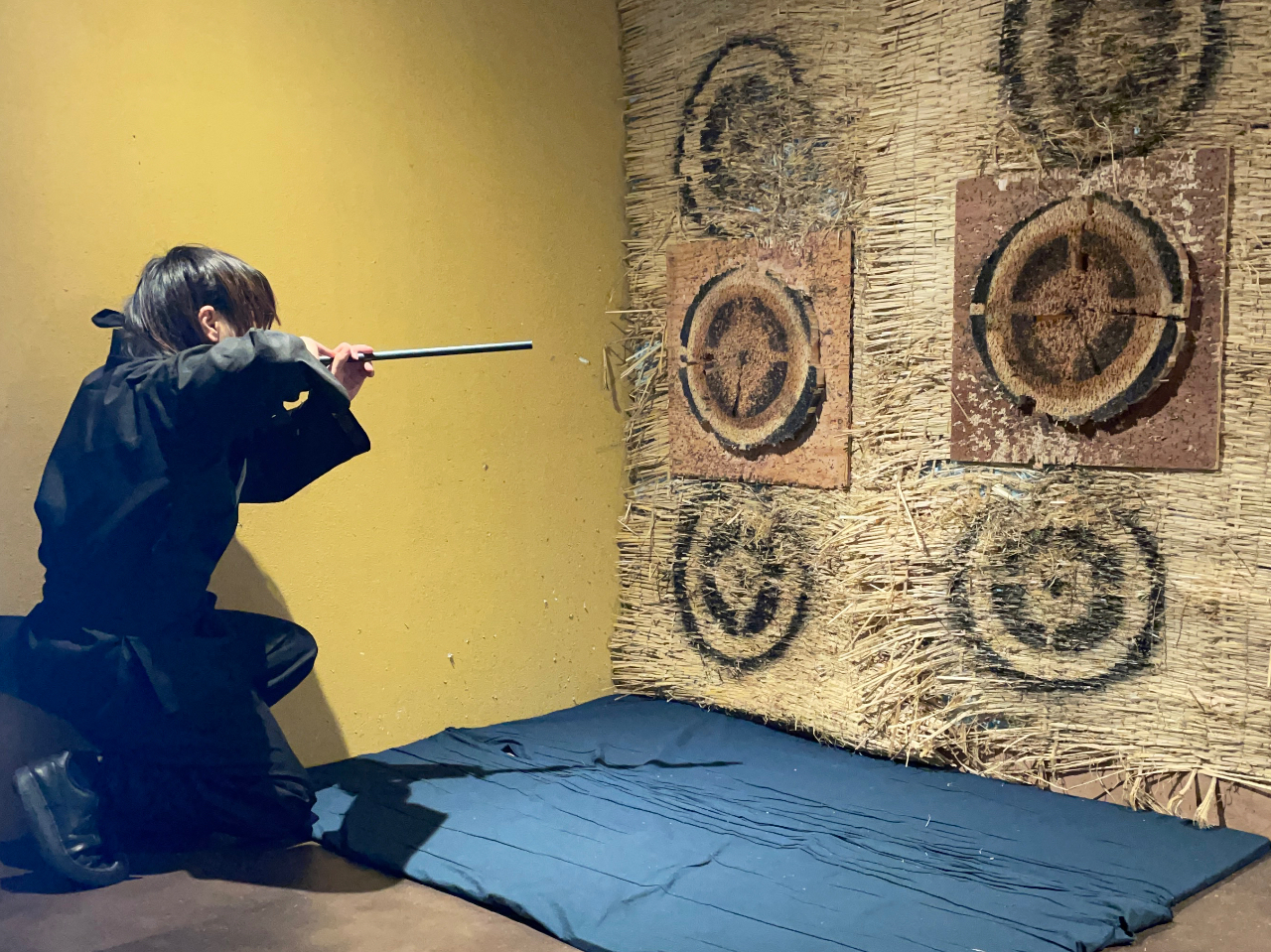 料金に含まれるもの 忍者修行(手裏剣, 吹き矢, 剣術)、ドリンク1品