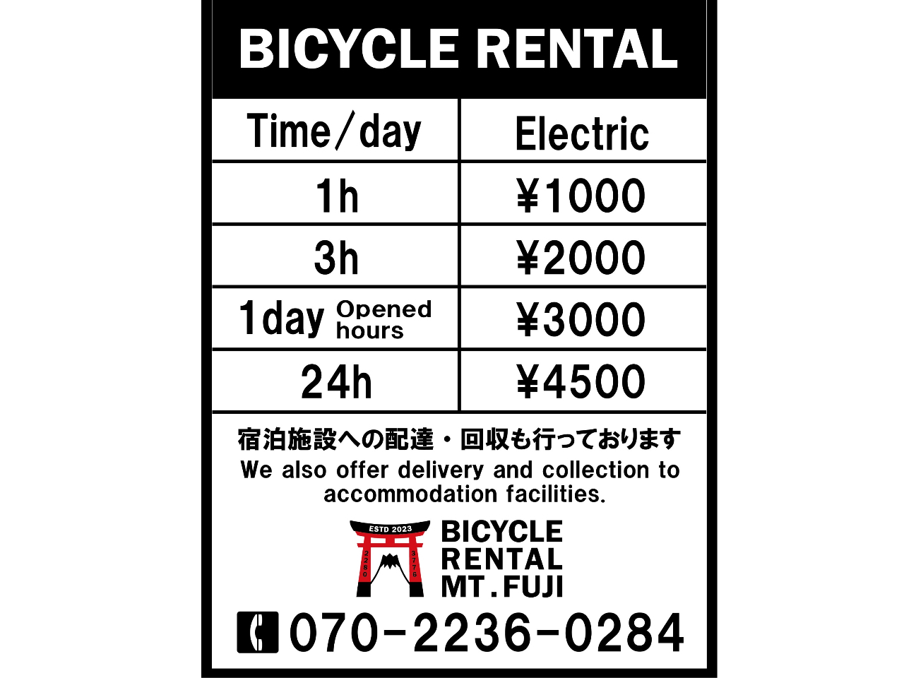 - Bicycle Rental Mt. Fujiの料金・値段は2,000円〜です。