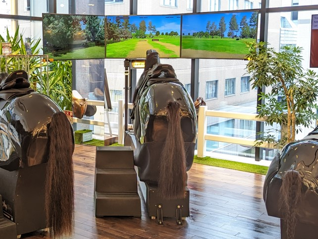 世界最先端の乗馬シミュレーターを使用し、CG画面と連動した臨場感あふれる本格的な乗馬をお楽しみ頂けます。