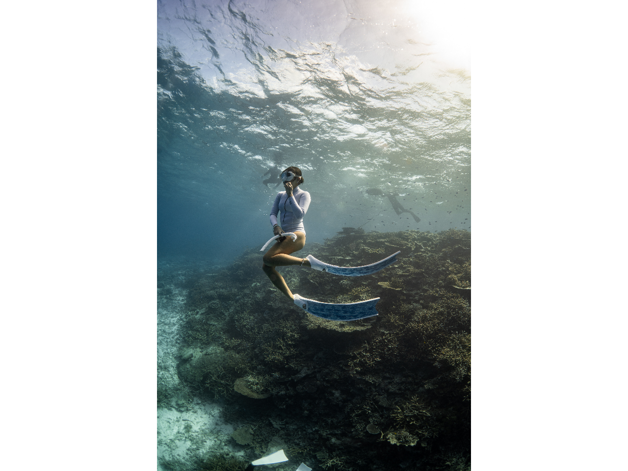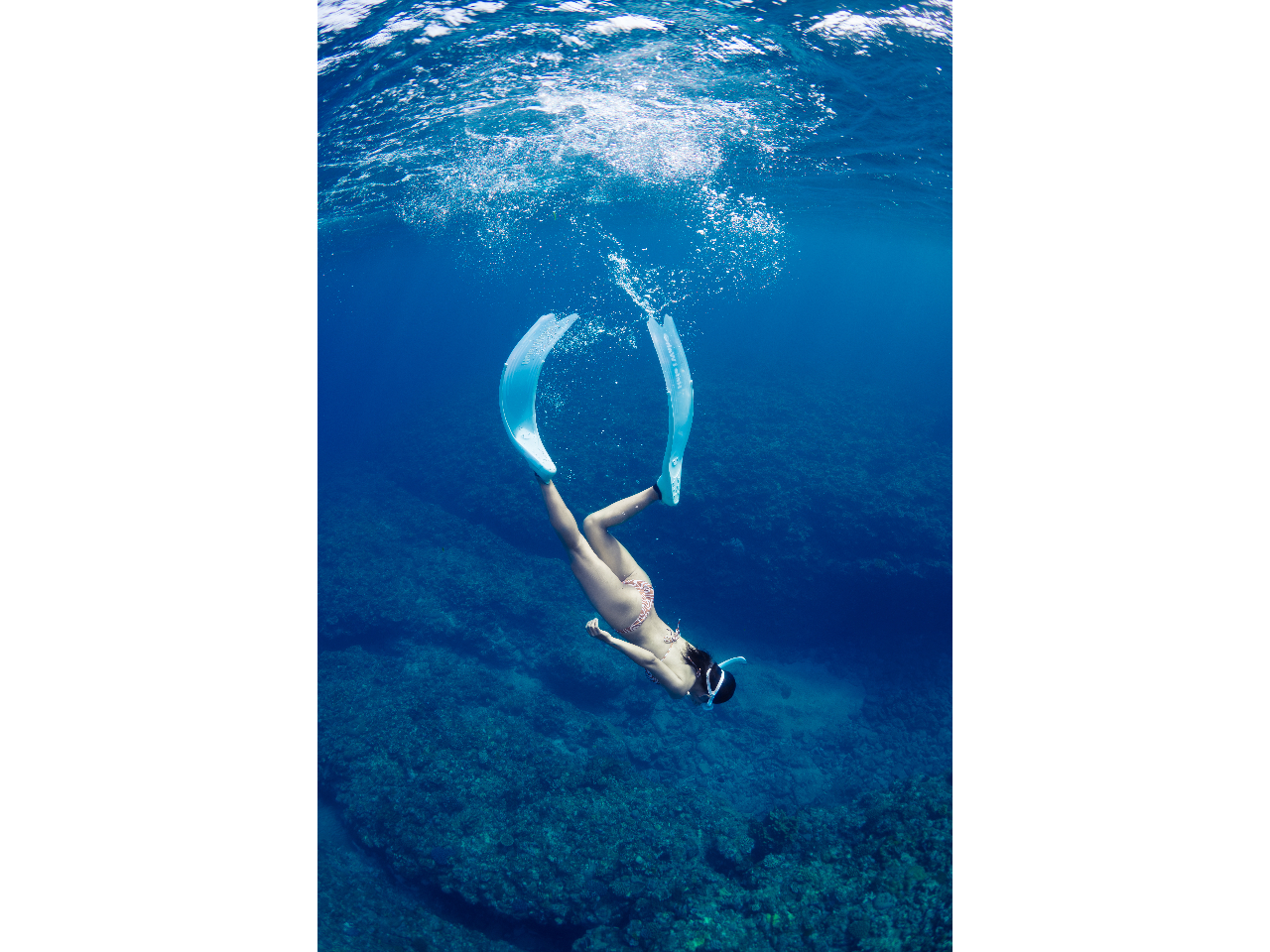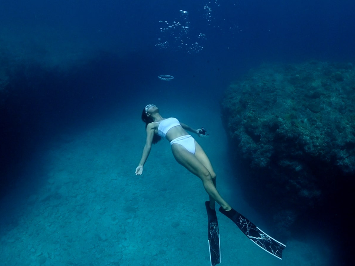 スキンダイビングではスキューバダイビングにはない水中での浮遊感、自由度、そして呼吸器がないからこその無音の空間がまるで宇宙遊泳をしているかのような体験をすることができます。