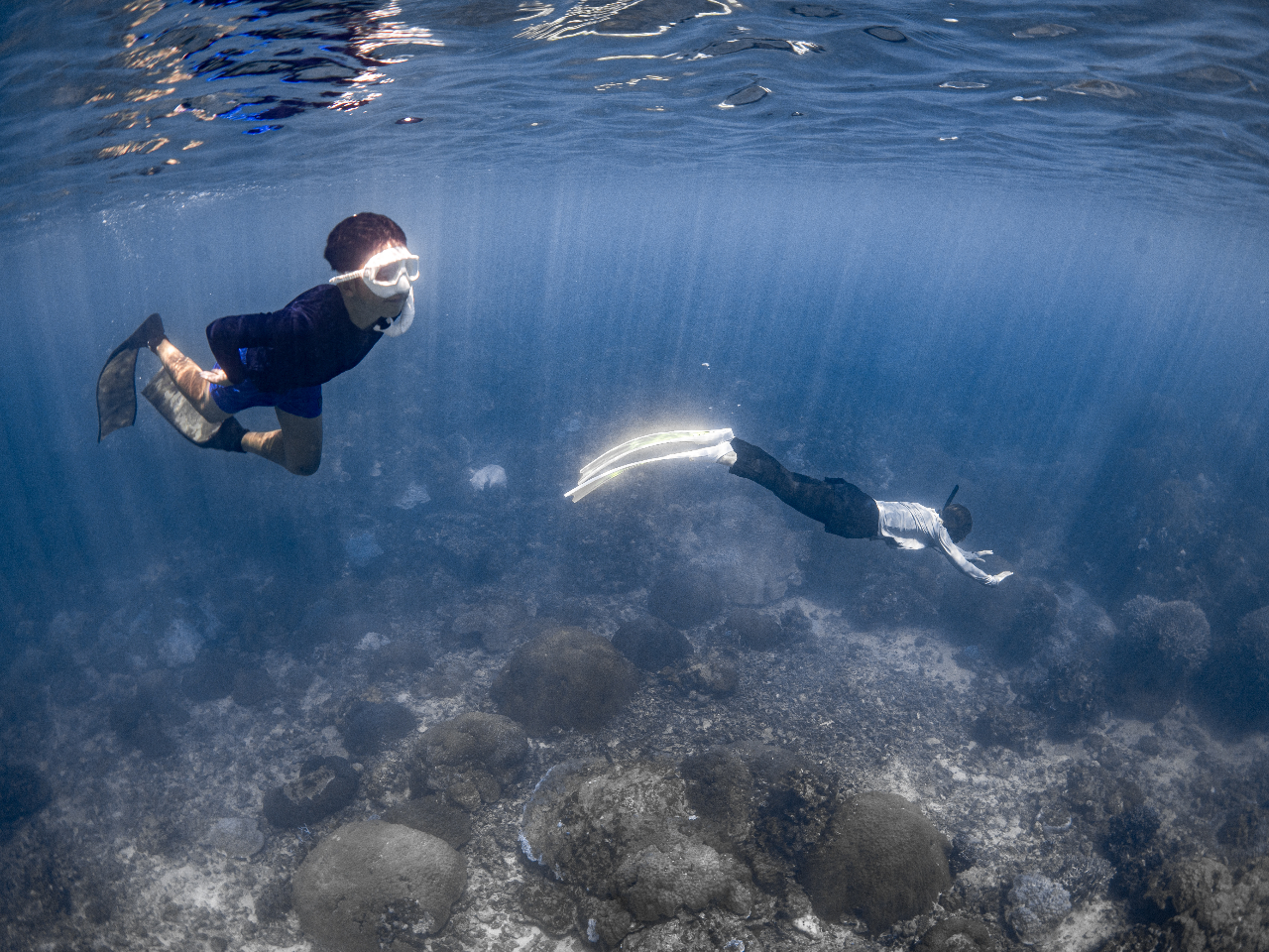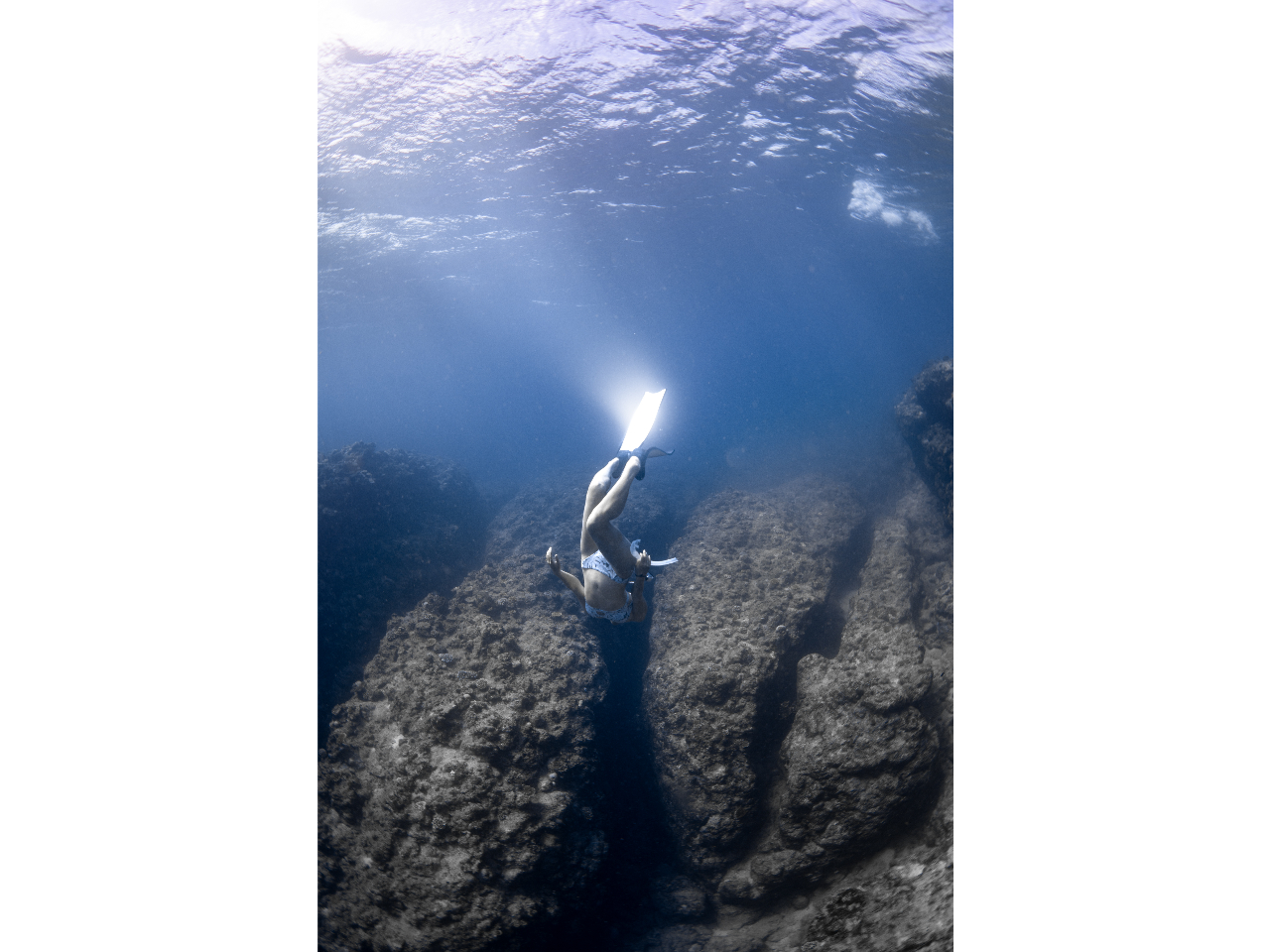 素潜り/スキンダイビングではスキューバダイビングにはない水中での浮遊感、自由度、そして呼吸器がないからこその無音の空間がまるで宇宙遊泳をしているかのような体験をすることができます。