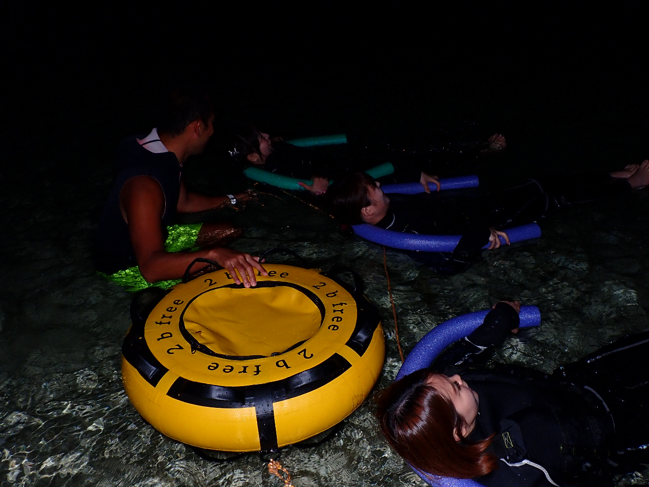 波の音を聞きながらぷかぷかと夜の海を浮かぶリラックス体験