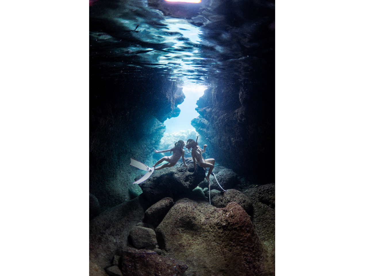 素潜り/スキンダイビングではスキューバダイビングにはない水中での浮遊感、自由度、そして呼吸器がないからこその無音の空間がまるで宇宙遊泳をしているかのような体験をすることができます。