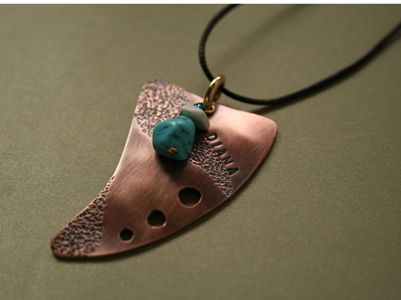 誕生石付きトントン彫金の銅ペンダント】 釘でトントン叩いて模様入れ。 誕生石付きで特別な一品に!