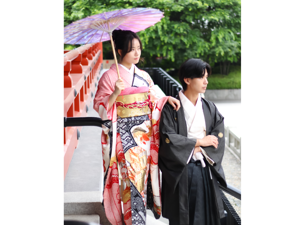当日予約可能♪カップル人気No1【カップル着物プラン・簪ヘアセット安心保証付き】カップルでお得!!!流行のレース着物まで500着以上からお好みの一着を選んで京都散策♪ワンランク上の着物に挑戦!
