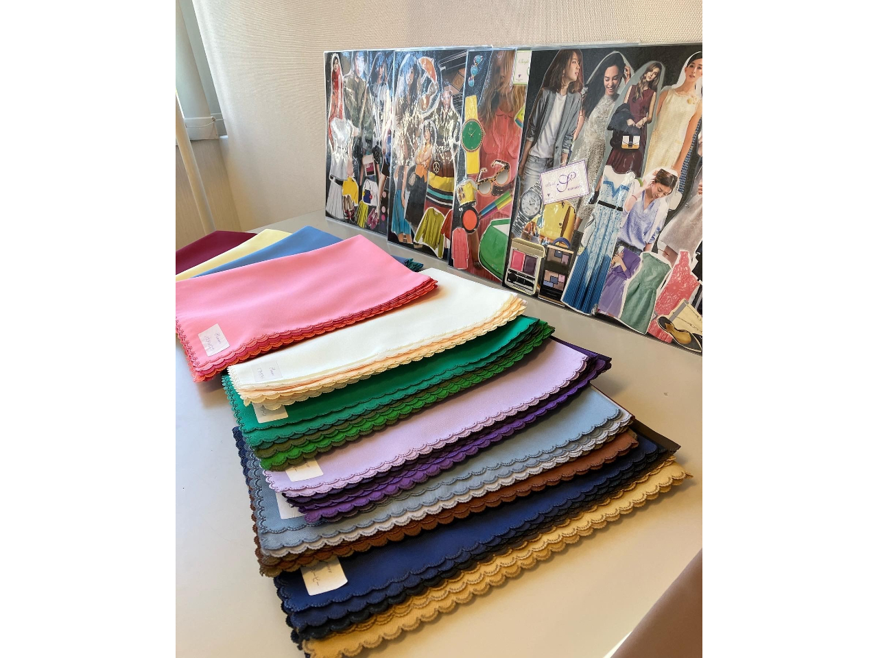 約40枚のカラードレープ(布)を当てながら 得意な色、苦手な色を診断していきます。  似合う色の傾向などよりお似合いの色が分かります。
