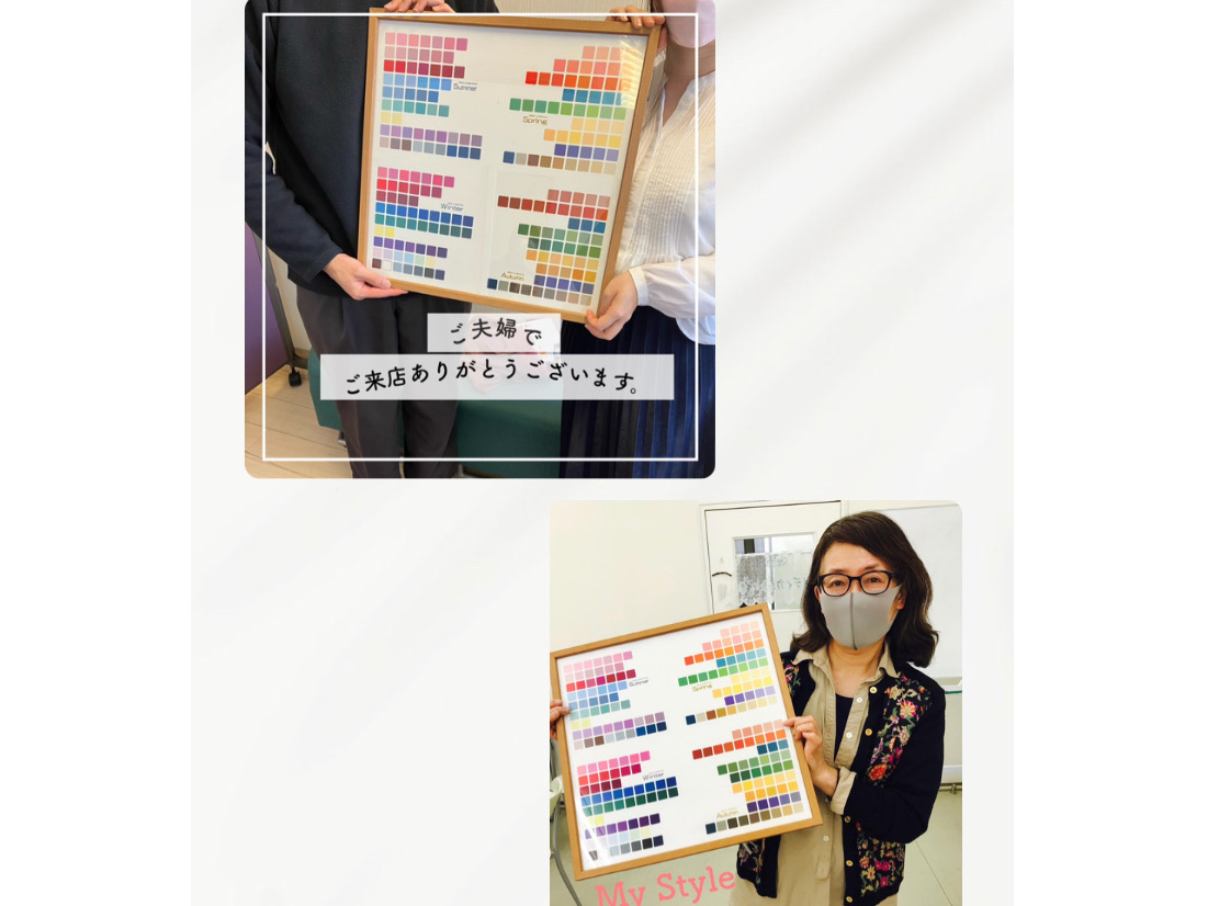 お一人様はもちろん、お友達、カップル、ご夫婦にもおすすめですパーソナルカラー診断を受けると、自分に最適な色やファッションがわかります。
