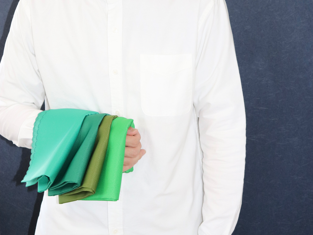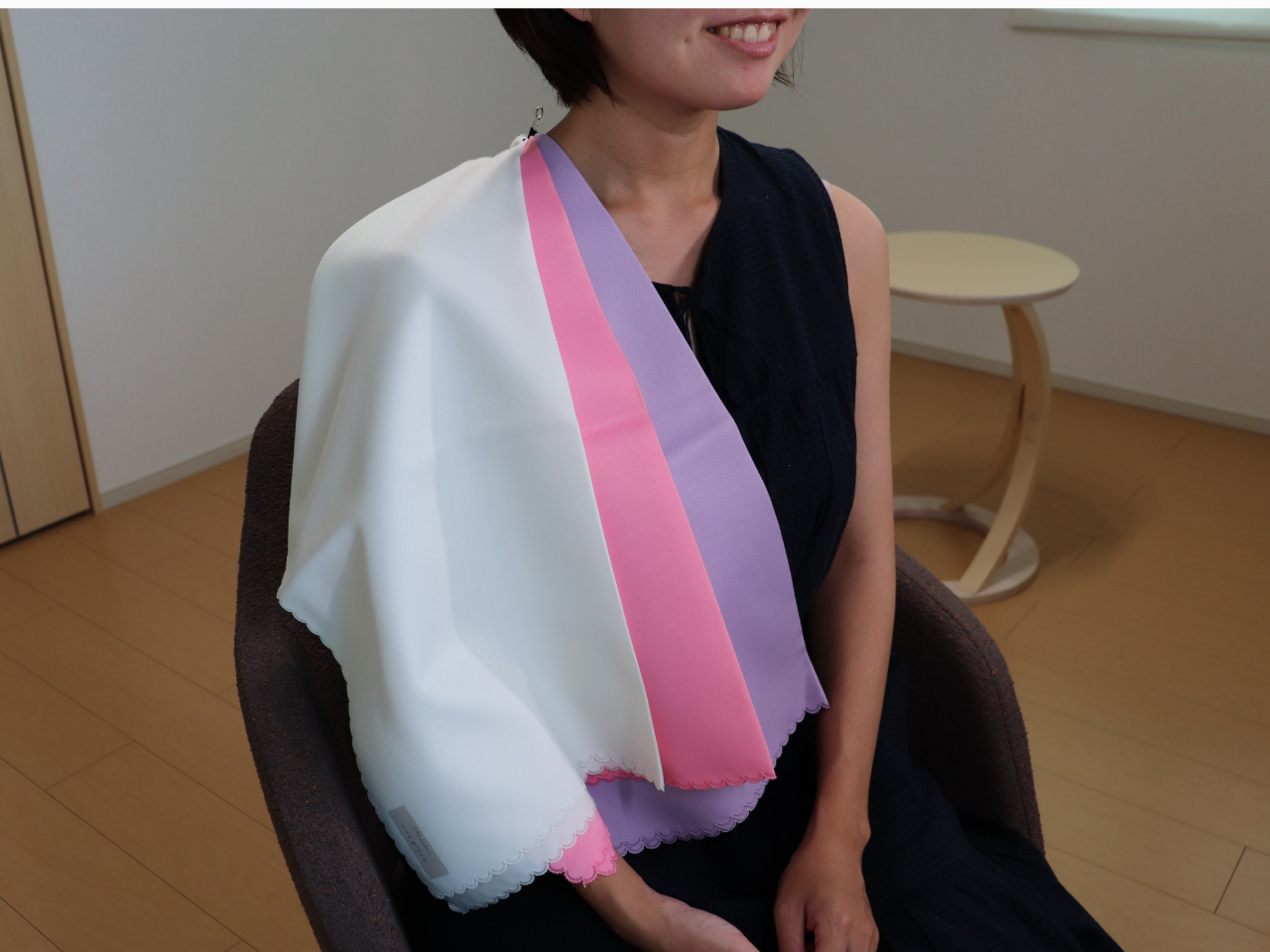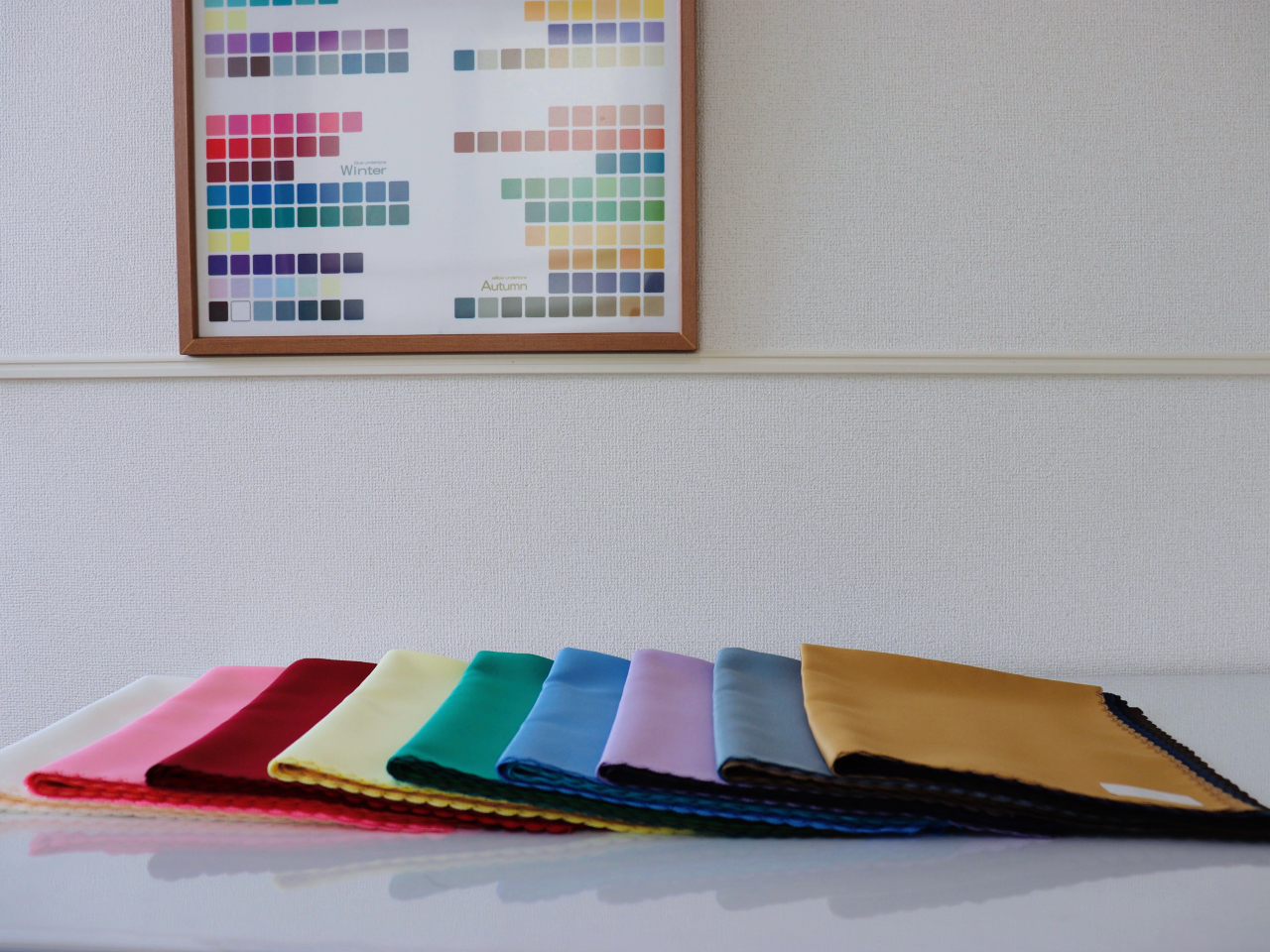 約40枚のカラードレープ(布)を当てながら 得意な色、苦手な色を診断していきます。 似合う色の傾向などよりお似合いの色が分かります。