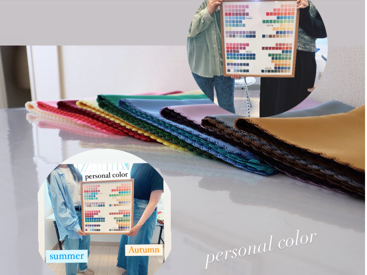 お一人様はもちろん、お友達、カップル、ご夫婦にもおすすめですパーソナルカラー診断を受けると、自分に最適な色やファッションがわかります。