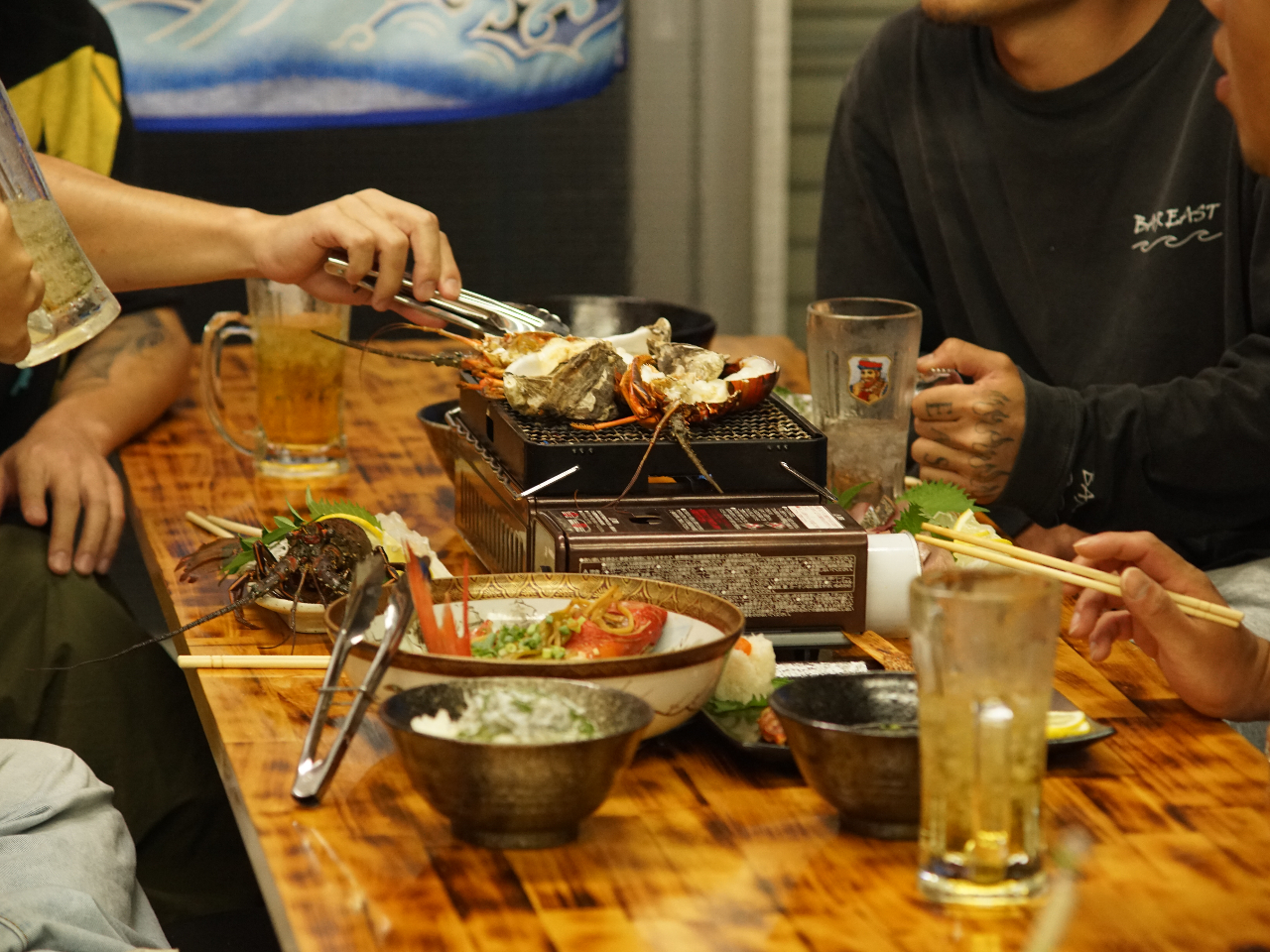 自社漁船を所有している当店は、高知県室戸沖で採れた新鮮な魚介類を、その場で焼いてお召し上がりいただけます!