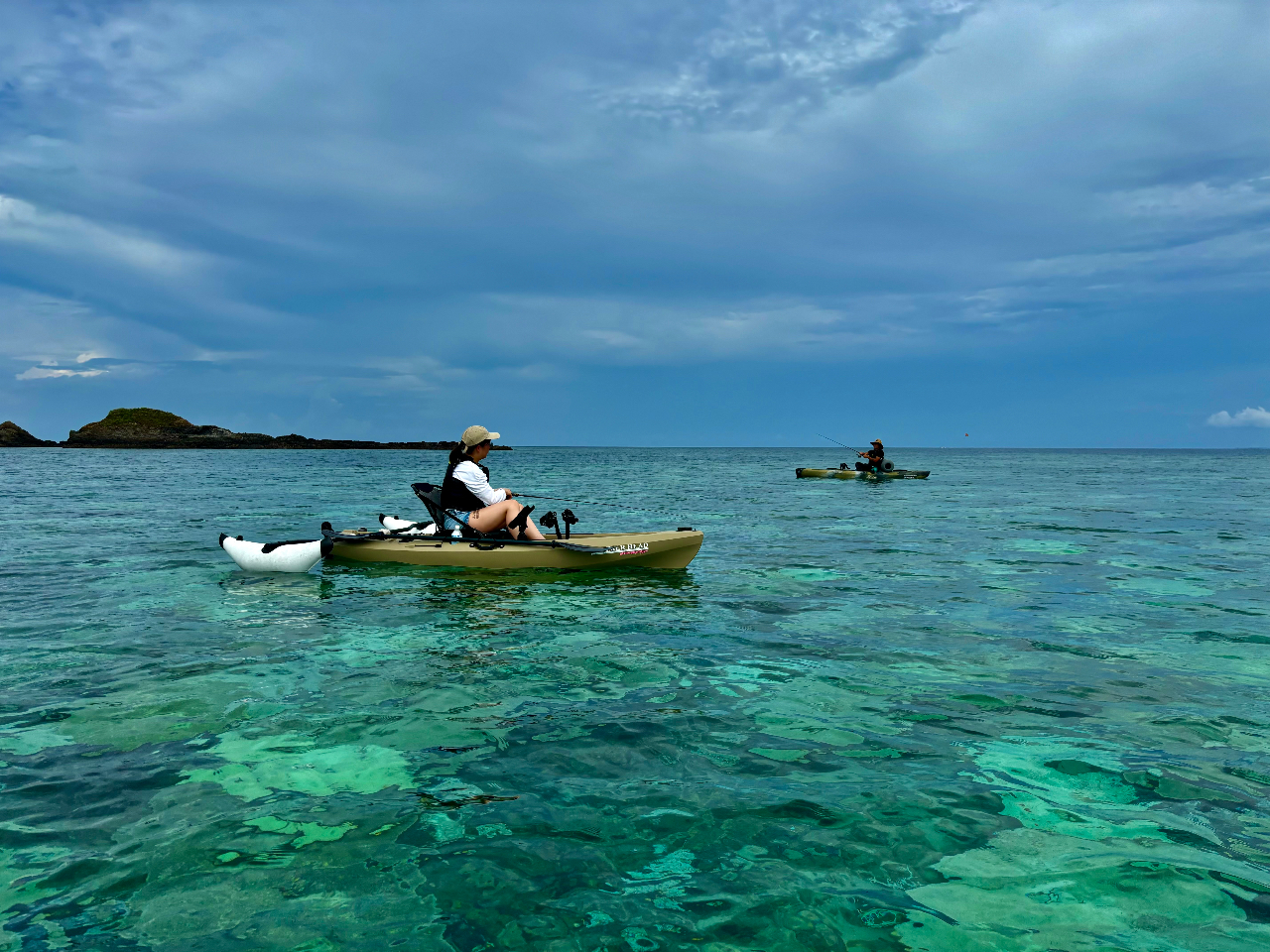 恩納村名嘉真周辺で足漕ぎカヤックの上からルアーフィッシングを楽しむプランです♪