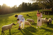 ファームスタッフの一員に!のびのびと暮らすファームエリアの動物たちの餌やりや、放牧体験ができます。