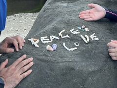 ガイドさんが宝探しで手に入れたサンゴで作った文字!