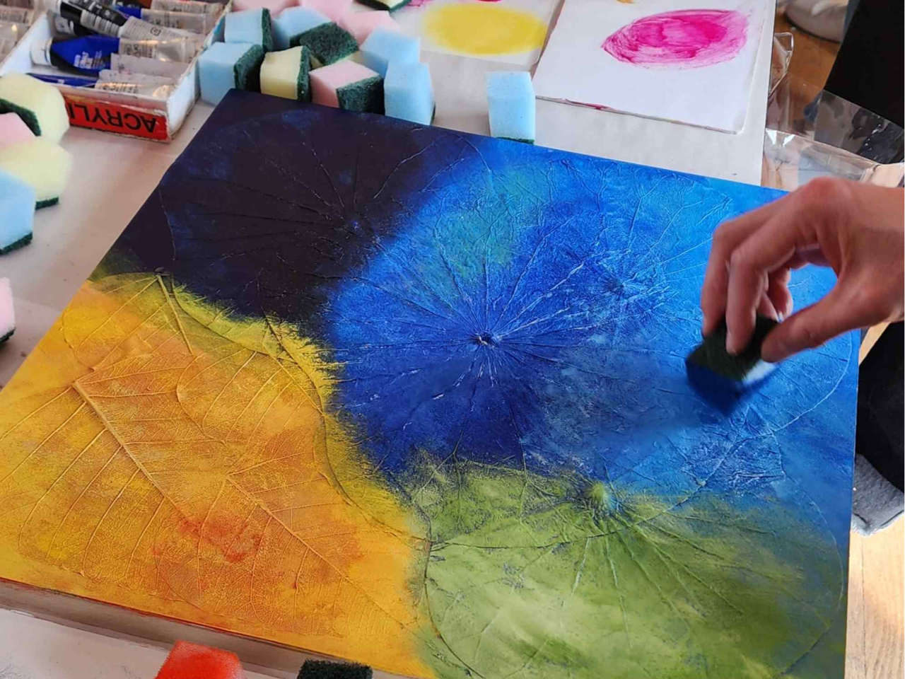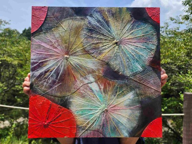 【愛知県・豊橋市】\はじめての方大歓迎!おひとり様よりご参加OK♪/初心者でも気軽に楽しめるボタニ―ペインティングのお教室です♪本物の蓮の葉やインド菩提樹をパネルに貼り付けて彩色するアートです!