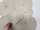 本物の蓮の葉やインド菩提樹をパネルに貼り付けて、彩色するアートです。