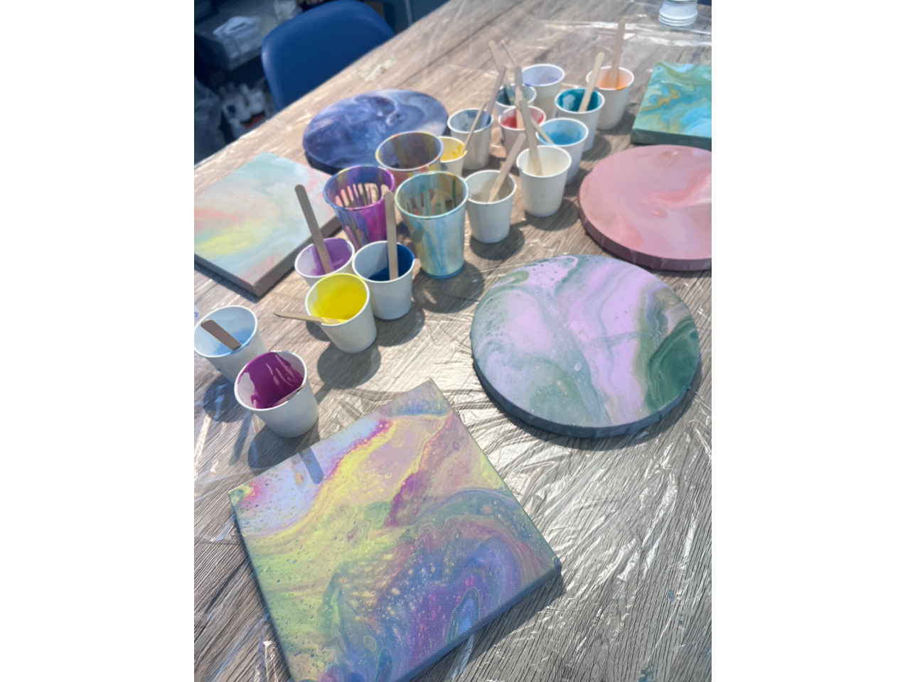 【大阪府・都島区】\はじめての方大歓迎!おひとり様よりご参加OK♪/ポーリングアートの作品を2つ(丸か正方形)を制作します♪画材の説明など簡単な知識の提供も行います!