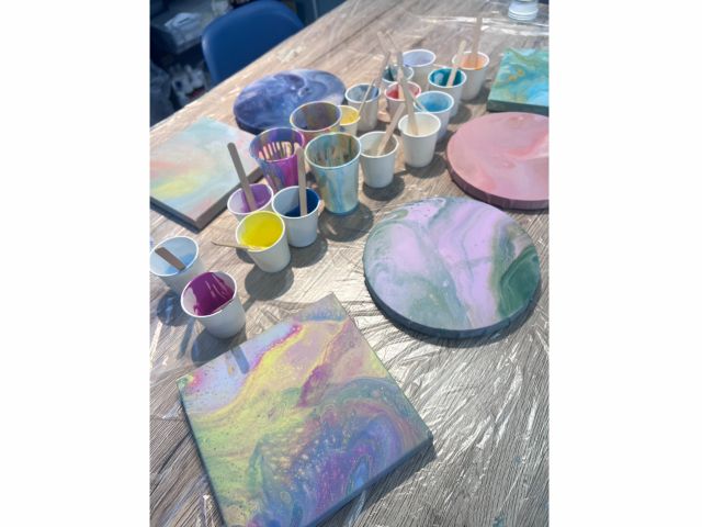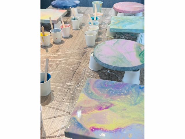 ポーリングアートの作品を2つ(丸か正方形)を制作します。楽しんでもらうことはもちろん、ご自身でアートを楽しみたい方向けにポーリングアートで使用する画材の説明など簡単な知識の提供も行います。