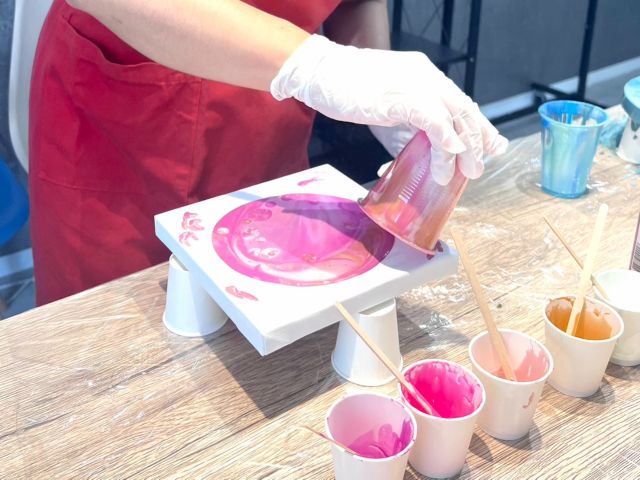 【大阪府・都島区】\はじめての方大歓迎!おひとり様よりご参加OK♪/ポーリングアートの作品を2つ(丸か正方形)を制作します♪画材の説明など簡単な知識の提供も行います!のプラン詳細