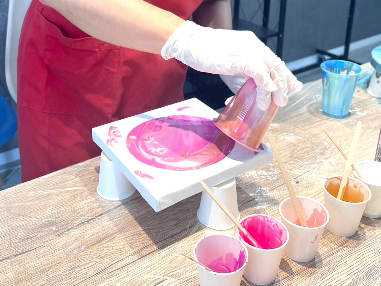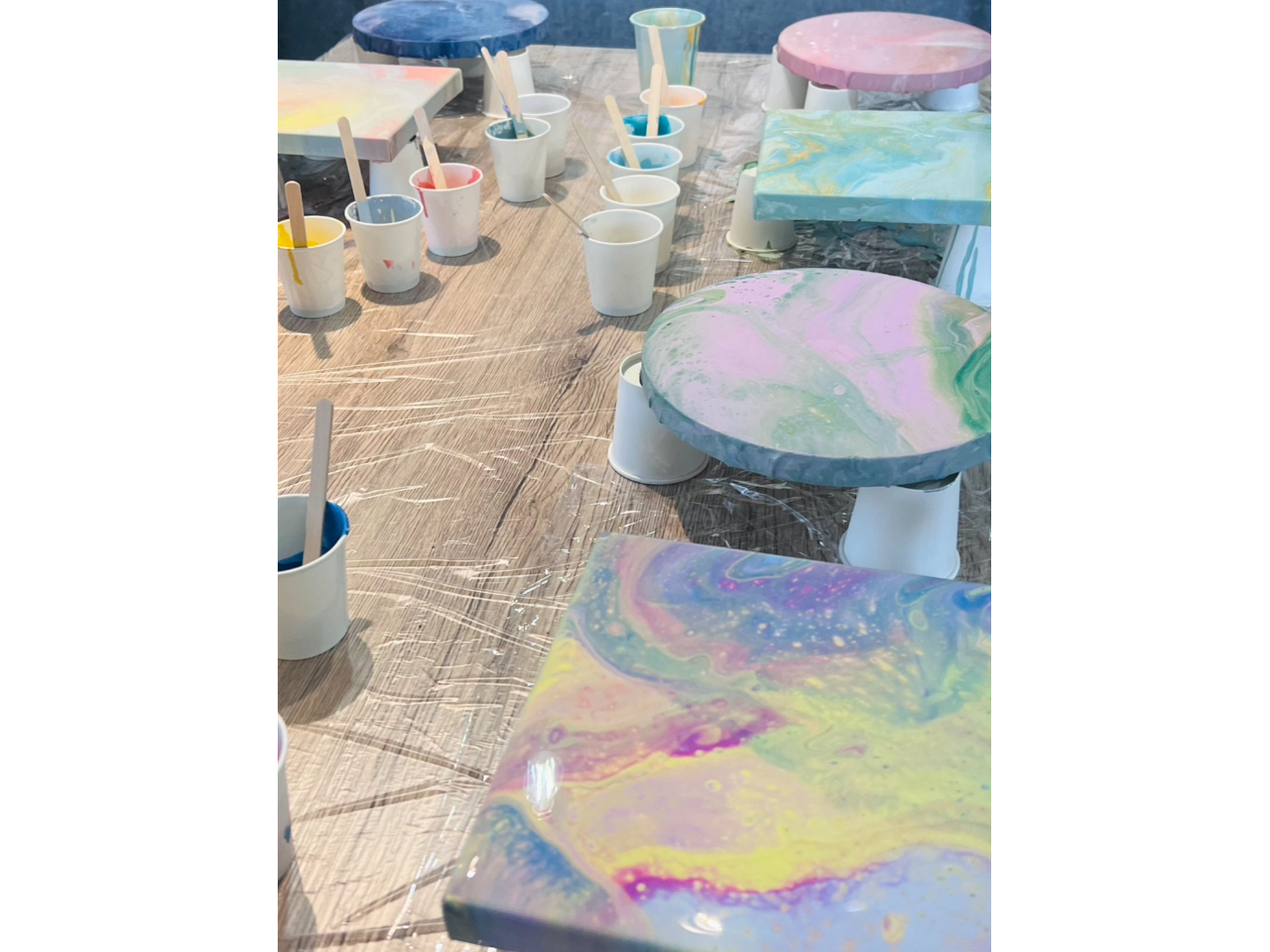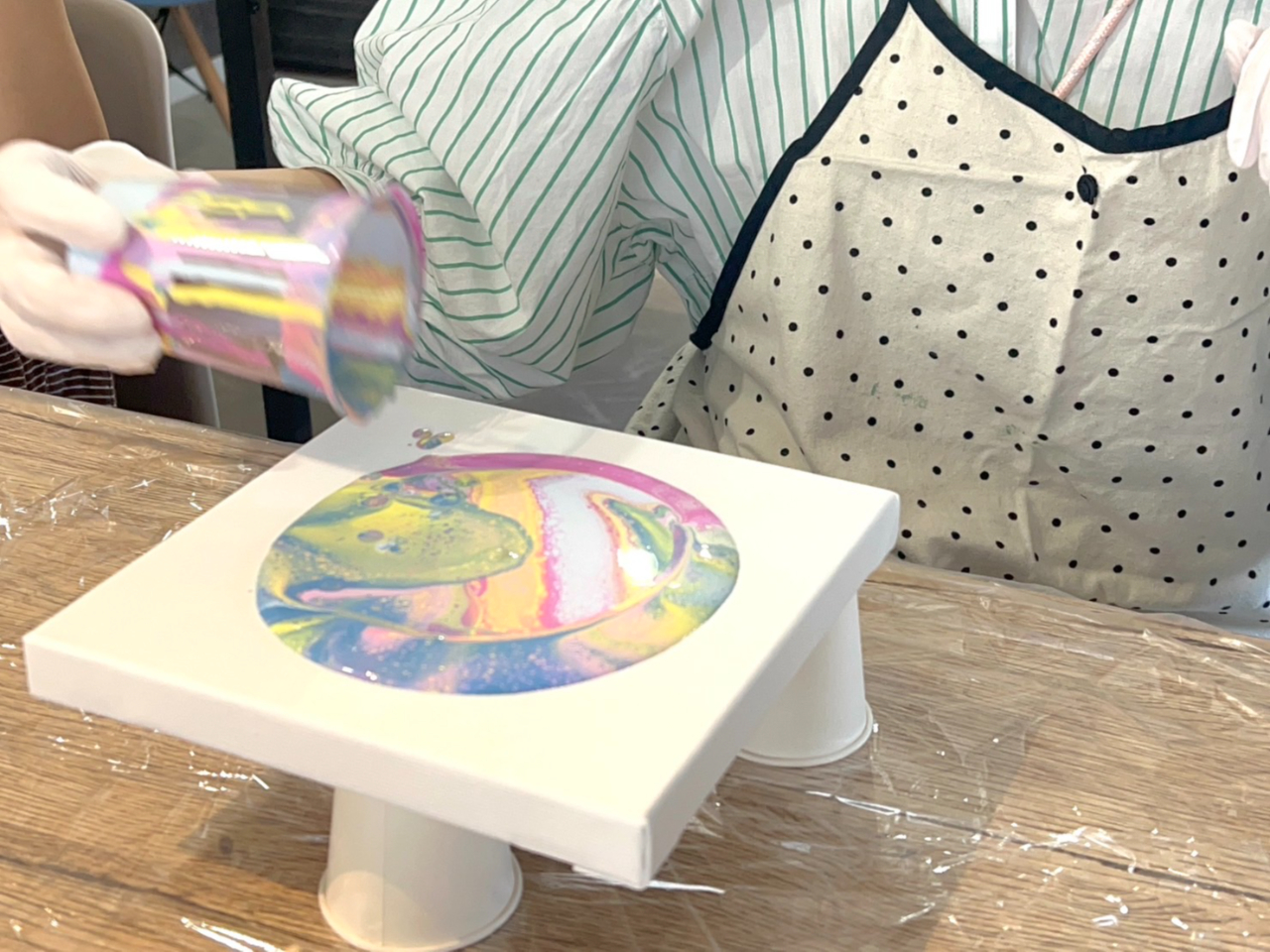 【大阪府・都島区】\はじめての方大歓迎!おひとり様よりご参加OK♪/ポーリングアートの作品を2つ(丸か正方形)を制作します♪画材の説明など簡単な知識の提供も行います!のプラン詳細