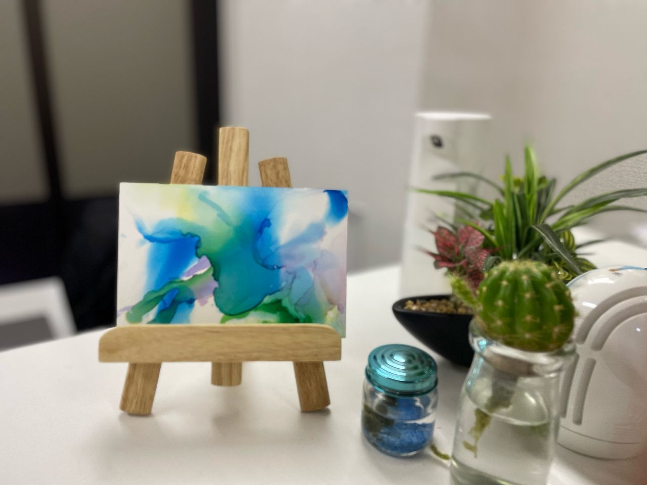 アルコールインクアートは、インクを垂らして風でのばすというシンプルな方法で抽象画を描いていきます。