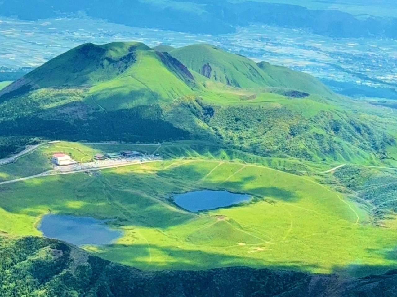 米塚・草千里・烏帽子岳・阿蘇中岳火口に加え、雄大な外輪山まで飛行範囲が広がり、阿蘇カルデラのスケールを立体的に味わえます。