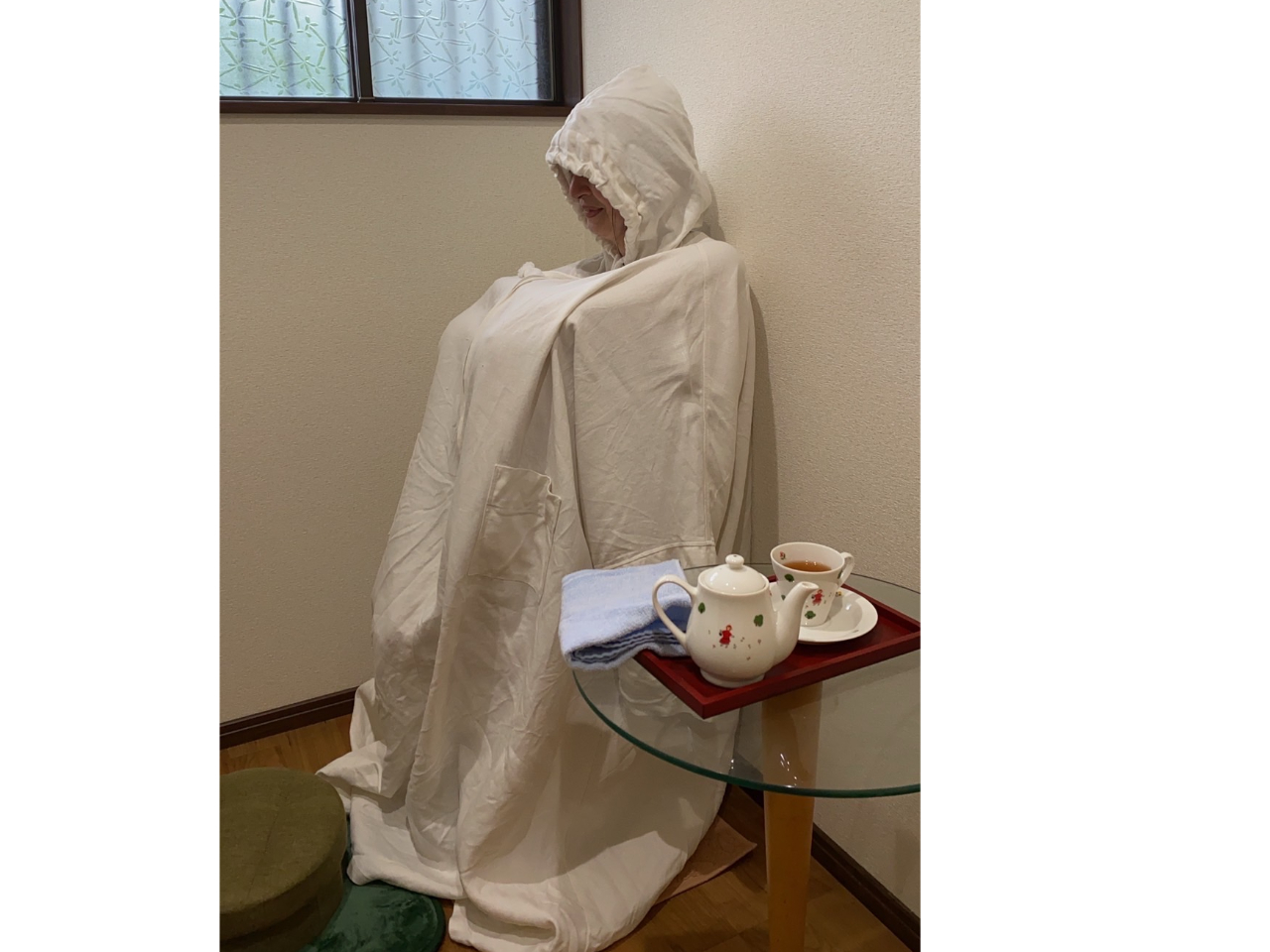 かしやのよもぎ蒸しは、マールジャパンさんの座器と麻草、麻のマントを使います。