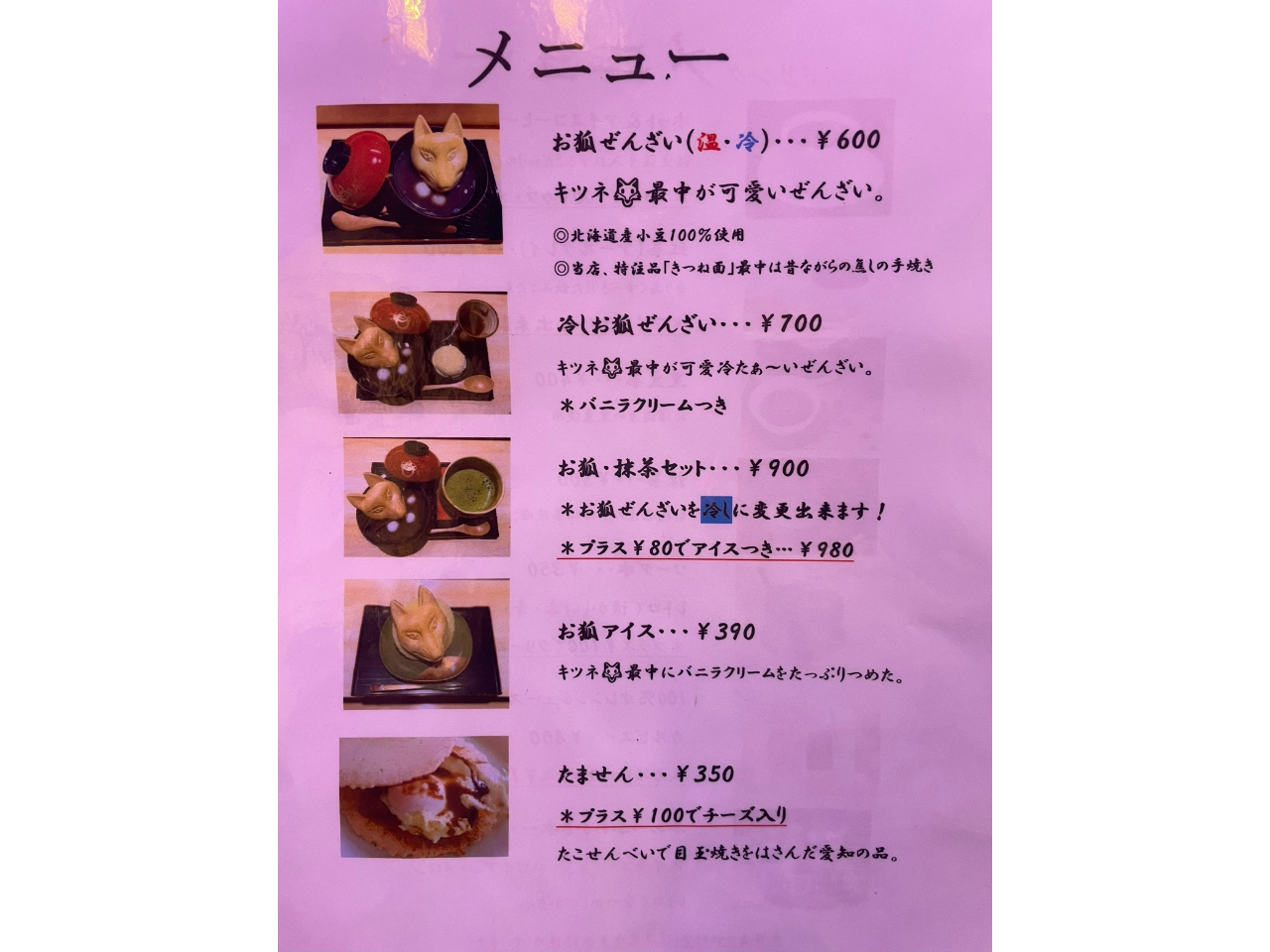 料金に含まれるもの ■狐面の絵付け体験(狐面+鈴+20色から選べるカラータッセル+飾り和紙+ラメシール+ニスのプロ仕上げ) ■選べるぜんざいセット+お抹茶付き