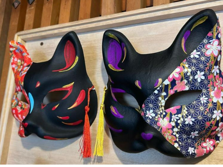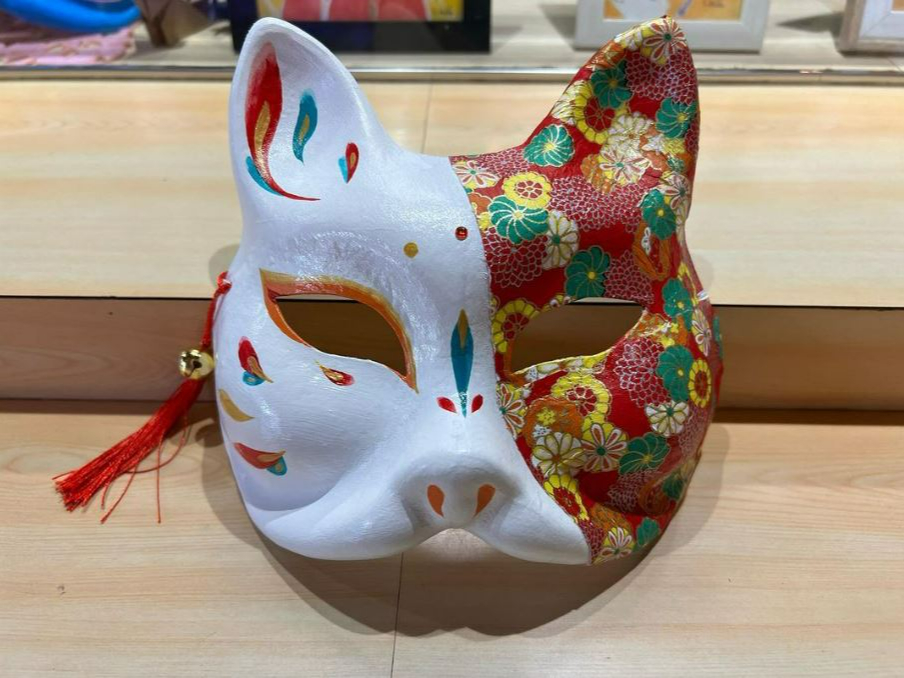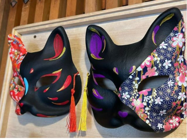 真っ白な狐のお面に絵付けをしていただける体験です。