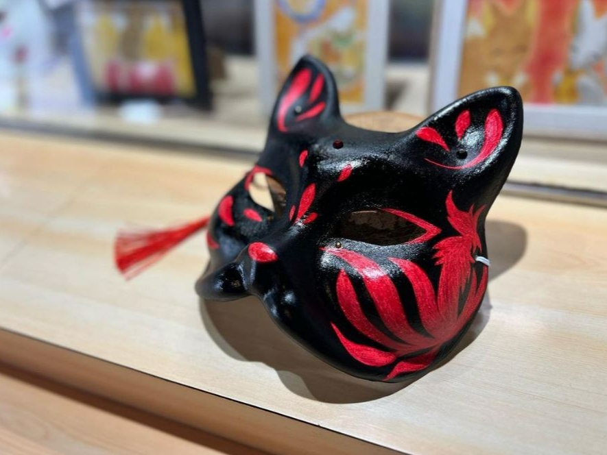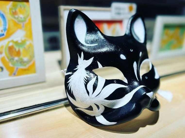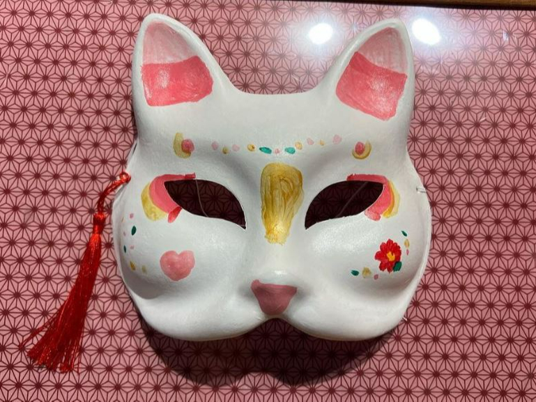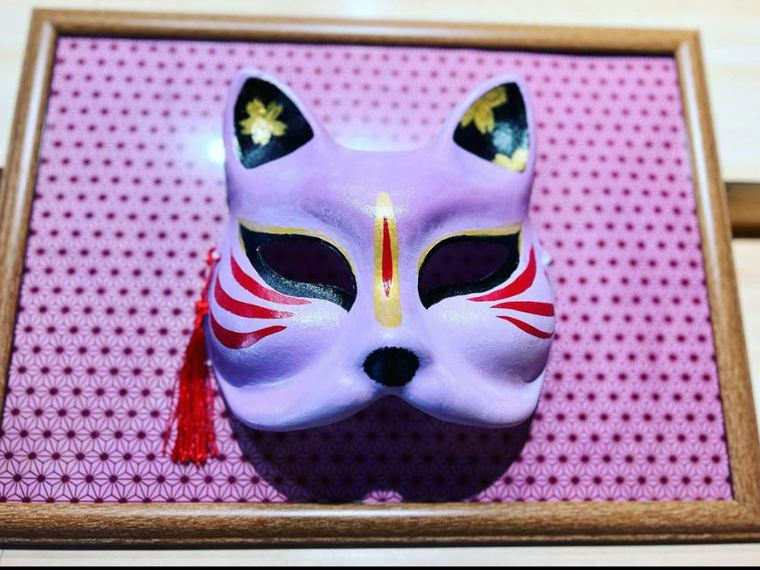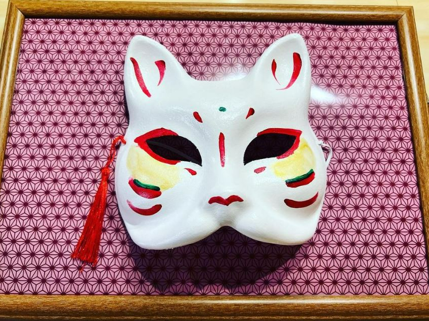 真っ白な狐のお面に絵付けをしていただける体験です。
