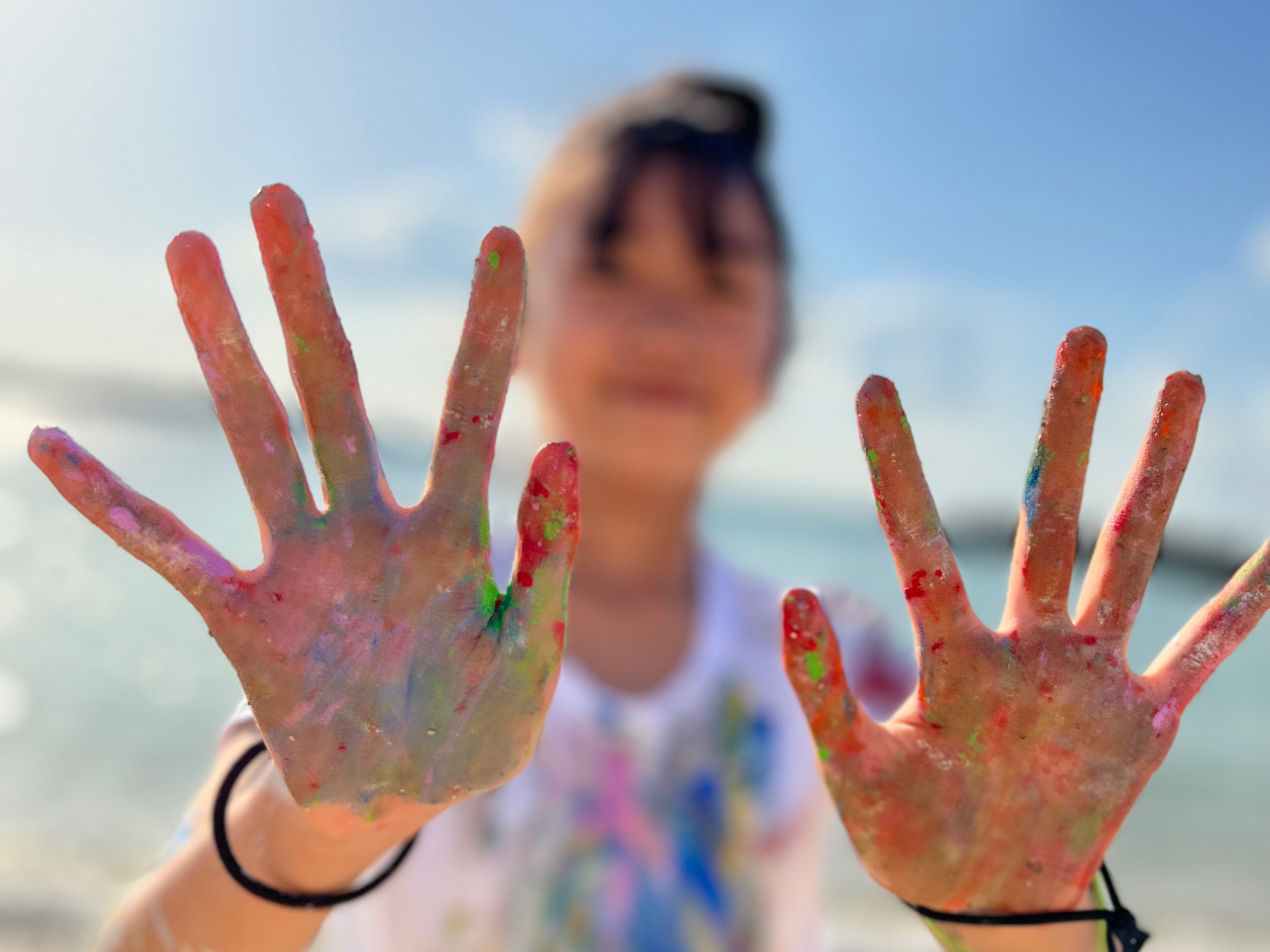 【beachで“ペイントアート”体験】0歳OK!! 親子やカップルで楽しめる五感アクティビティ♪地元民しか知らない綺麗なビーチで服や体や顔に絵の具でお絵描き体験☆カップルやファミリーに特におすすめ☆