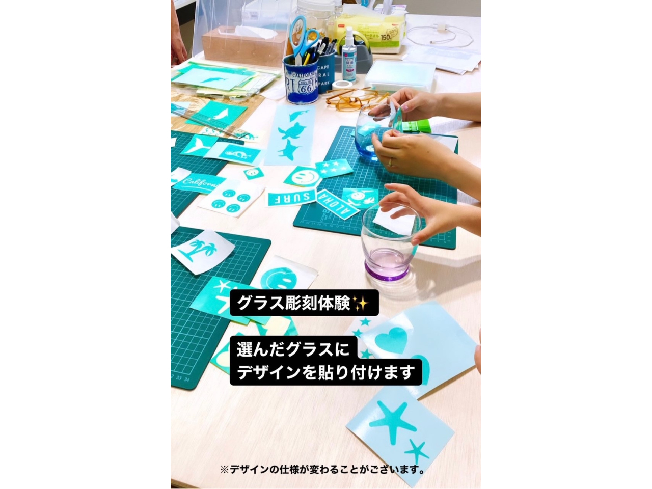 グラスに自由に彫刻作業できます お客様が主役!作ったグラスはすぐ持ち帰りできます。しっかりサポート致しますのでとにかく楽しんでください。