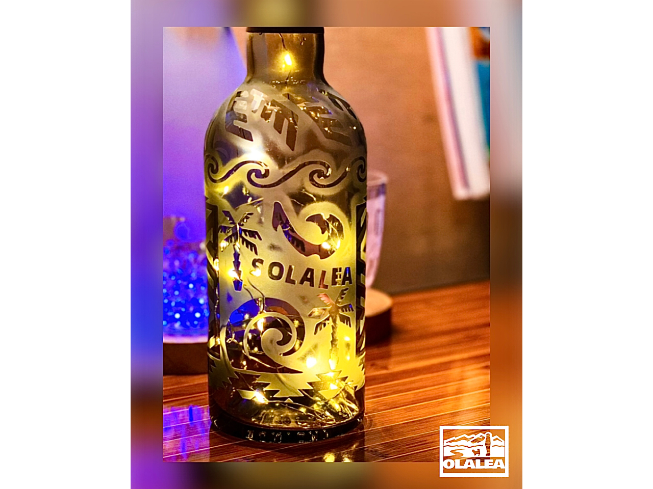 空瓶を素敵なボトルランプに変えます。ボトルにいろんなデザインを彫刻してオリジナルのボトルランプを作れます。