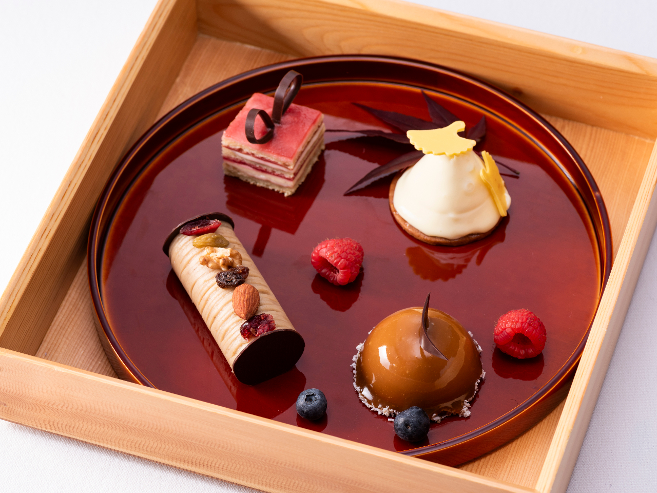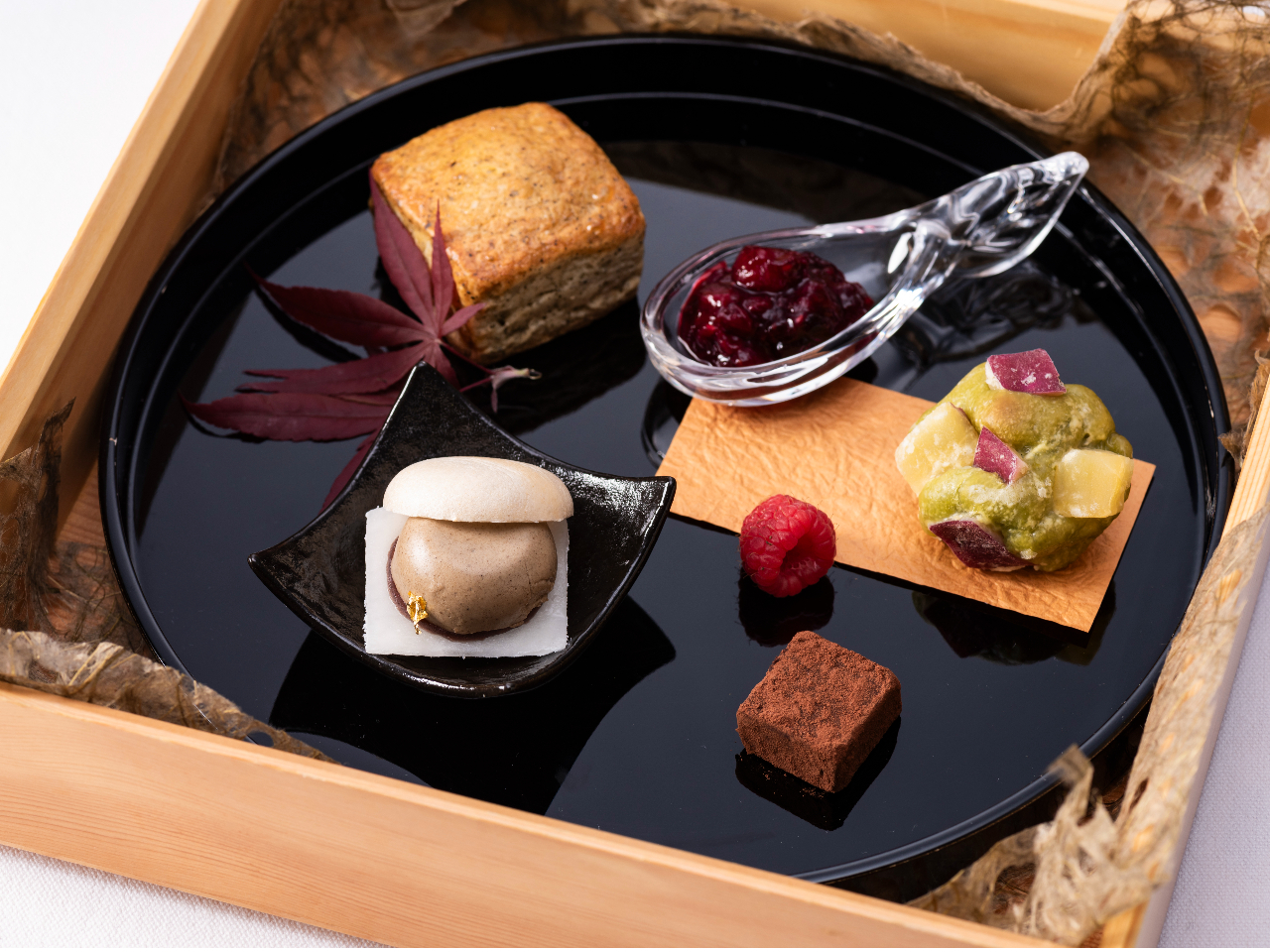 京都の老舗「祇園辻利」のお茶とベリーを使用した香り高いスイーツやセイボリーをご用意しました。