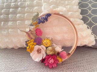 ドライフラワーやアーティフィシャルフラワーを使って刺繍枠にアレンジ体験*゜。
