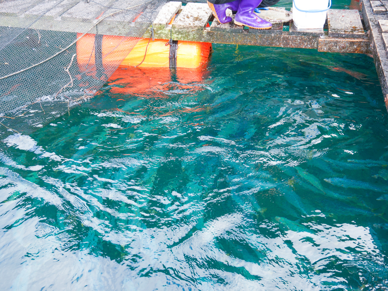 その先では、鯖や鰤、そしてマグロが泳ぐ養殖場へご案内。