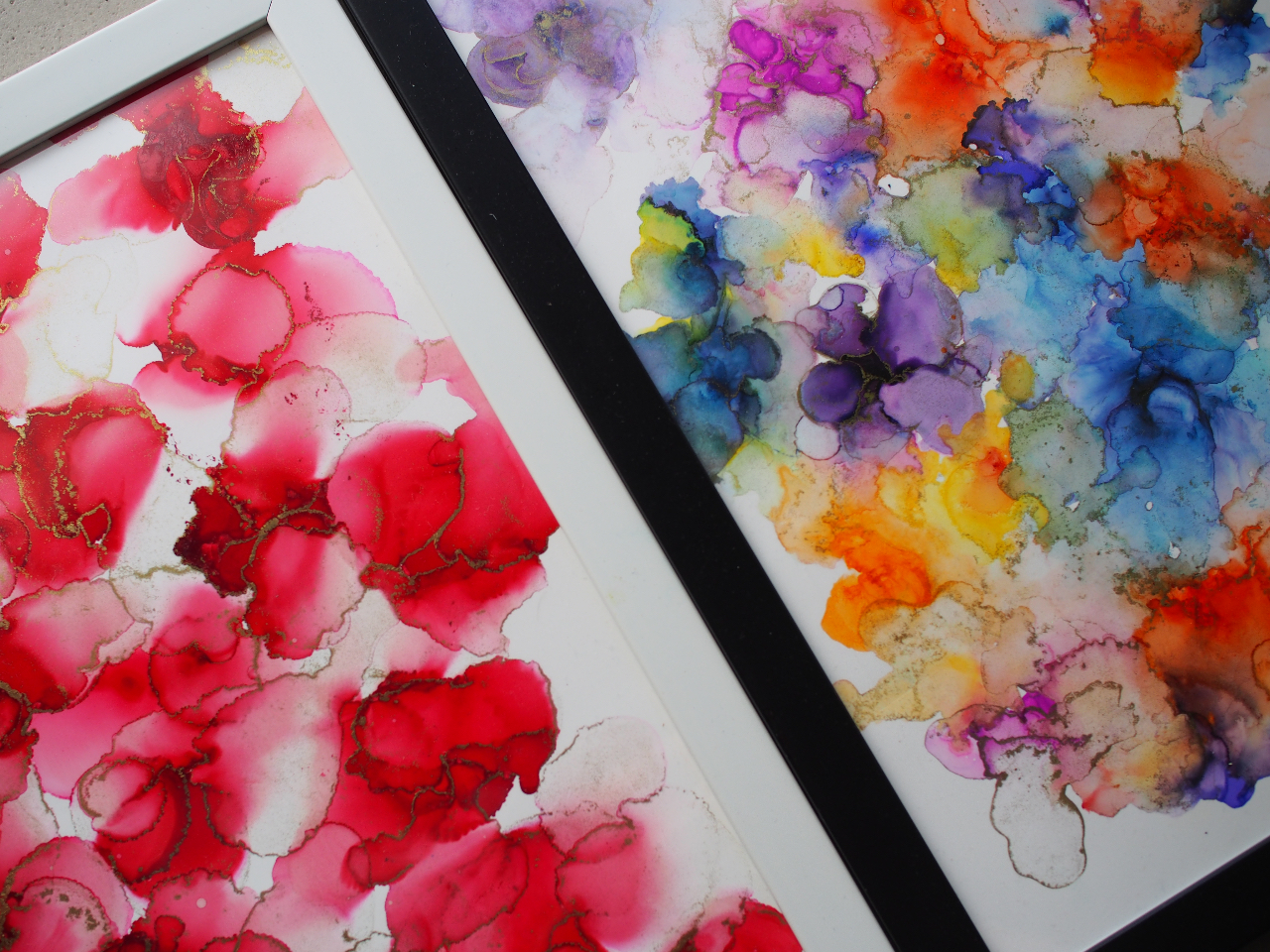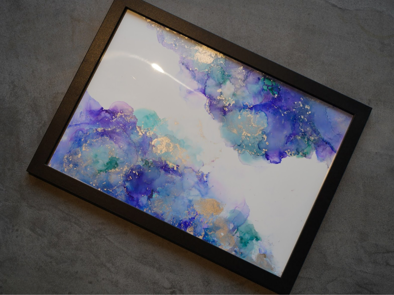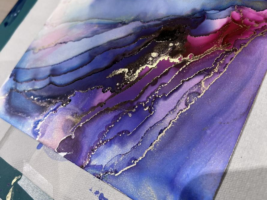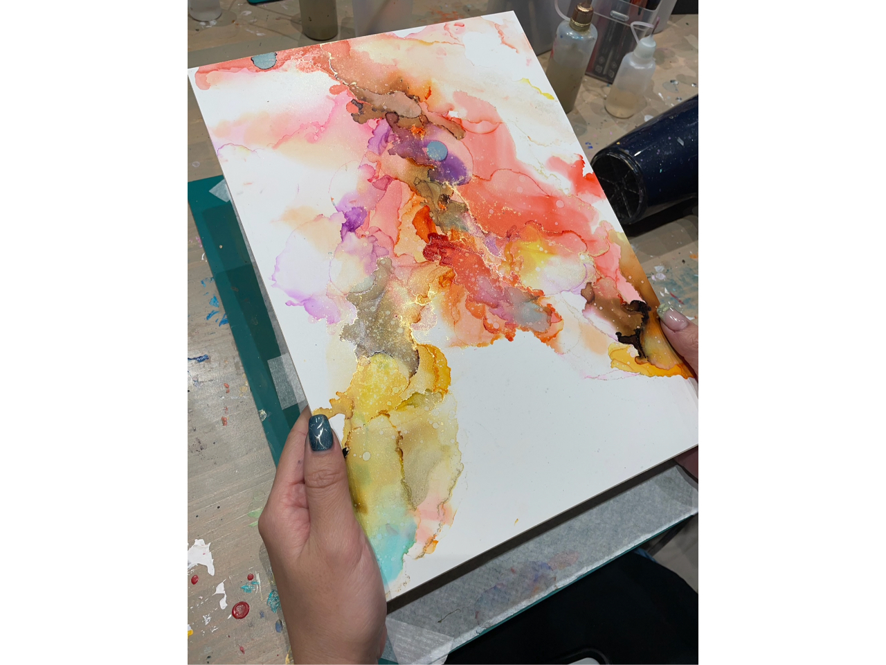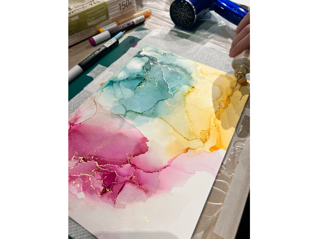 様々な技法を学びながらアルコールインクを広げて絵画を描いていただくプランです!