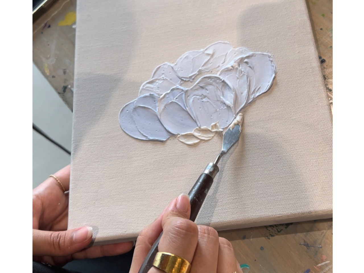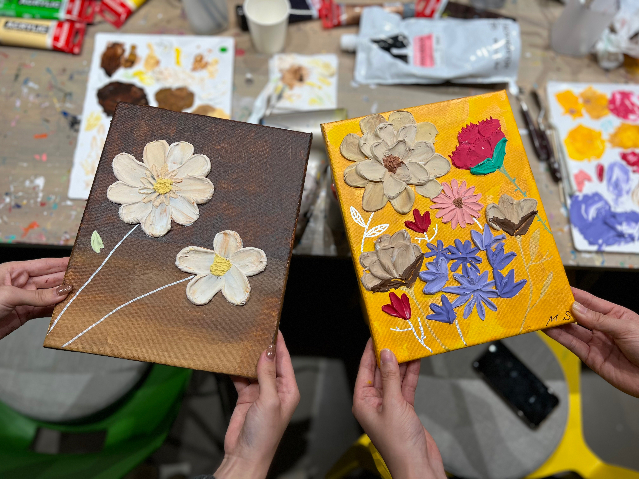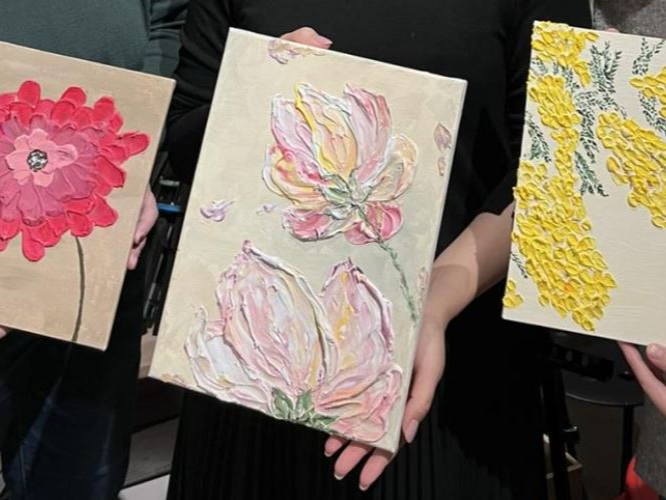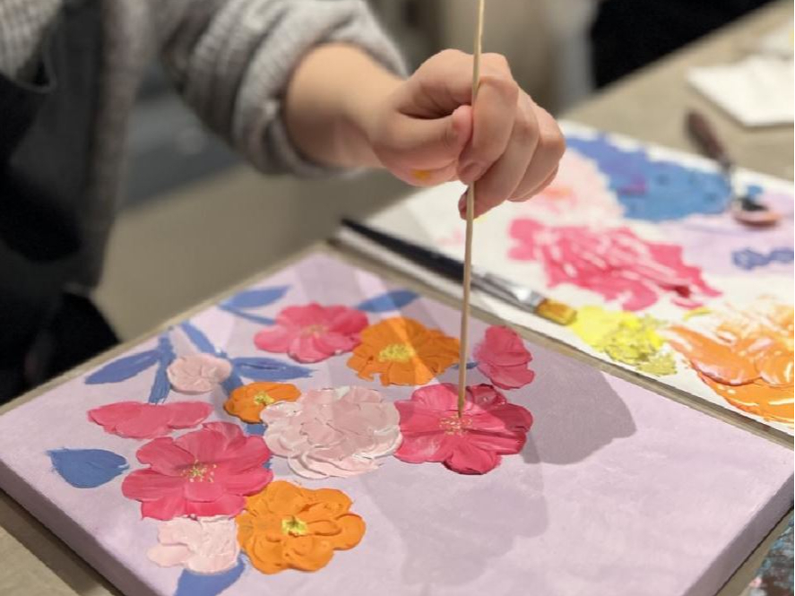 絵の具を立体的に盛り上げて描くテクスチャフラワーアートの体験♪