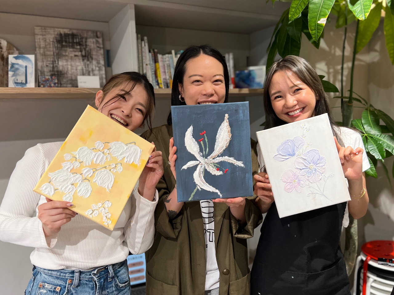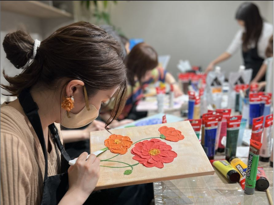 【池袋】★テクスチャフラワーアート 立体的に描くアート体験【カップル・ご友人・女性・家族・おひとり向け】
