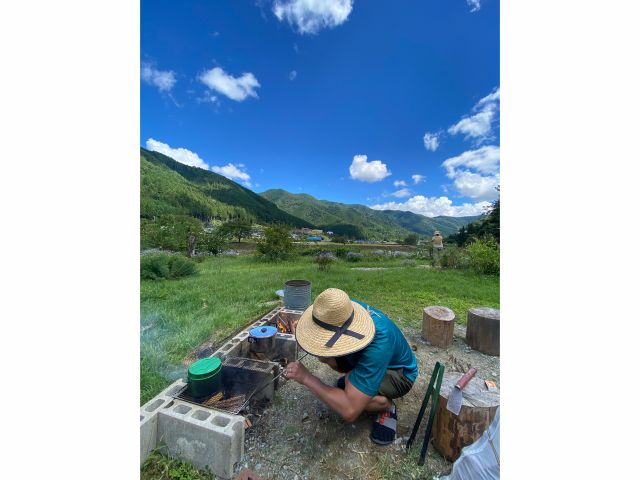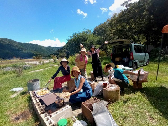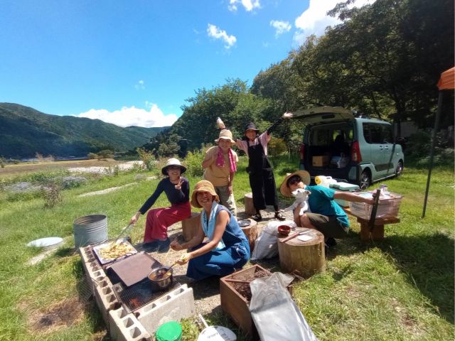 清流馬瀬川に面したプライベートキャンプ場で焚き火ランチ&美輝の里の入浴チケット付き